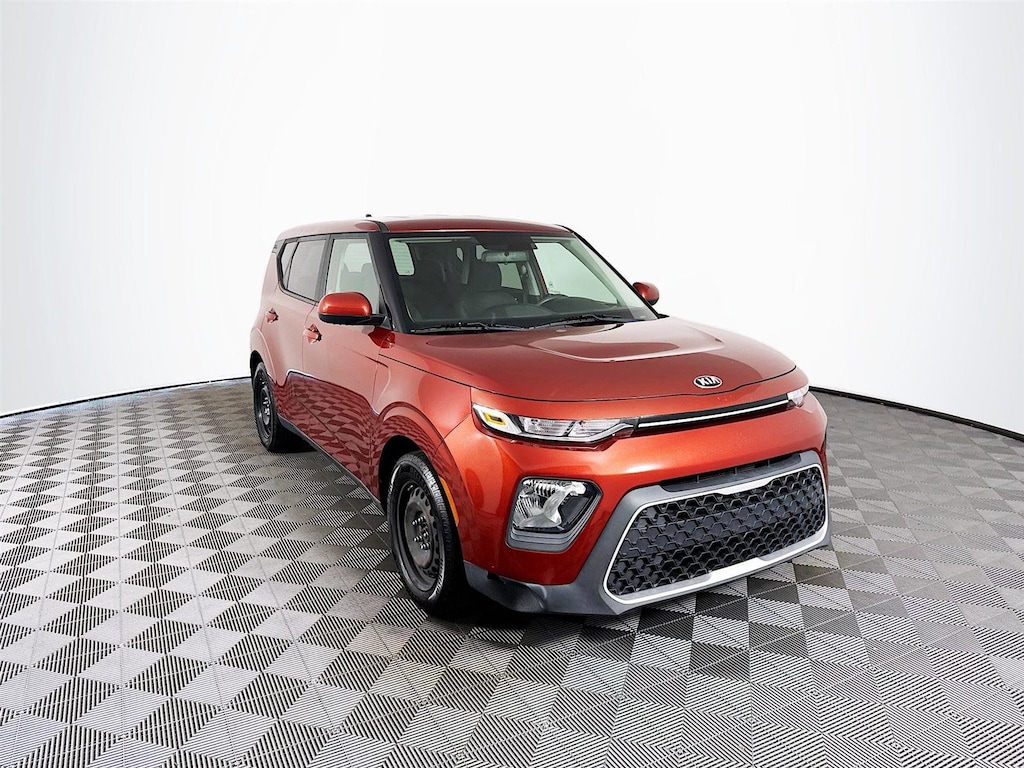 This 2020 Kia Soul LX in Mars Orange features: Kia Certified Pre-Owned Certified, 4-Wheel Disc Brakes, 6 Speakers, 6-Way Adjustable Driver's Seat, ABS brakes, Air Conditioning, AM/FM radio, Apple CarPlay & Android Auto, Brake assist, Bumpers: body-color, Carpeted Floor Mats, Delay-off headlights, Driver door bin, Driver vanity mirror, Dual front impact airbags, Dual front side impact airbags, Electronic Stability Control, Exterior Parking Camera Rear, Front anti-roll bar, Front Bucket Seats, Front Center Armrest, Front reading lights, Front wheel independent suspension, Fully automatic headlights, Low tire pressure warning, Occupant sensing airbag, Outside temperature display, Overhead airbag, Overhead console, Passenger door bin, Passenger vanity mirror, Power door mirrors, Power steering, Power windows, Radio: AM/FM/MP3 Audio System, Rear Bumper Applique, Rear window defroster, Rear window wiper, Remote keyless entry, Speed control, Speed-sensing steering, Split folding rear seat, Steering wheel mounted audio controls, Tachometer, Telescoping steering wheel, Tilt steering wheel, Traction control, Trip computer, Variably intermittent wipers, Wheels: 16" x 6.5 Steel, Woven Cloth Seat Trim. Certified. Clean CARFAX. Odometer is 11910 miles below market average! 29/35 City/Highway MPG