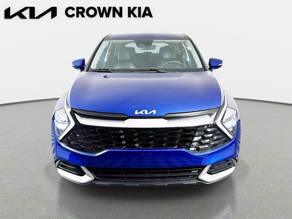 This 2023 Kia Sportage EX in Sapphire Blue features: 4-Wheel Disc Brakes, 6 Speakers, ABS brakes, Air Conditioning, Alloy wheels, AM/FM radio: SiriusXM, Apple CarPlay & Android Auto, Auto High-beam Headlights, Automatic temperature control, Axle Ratio: 3.648, Brake assist, Bumpers: body-color, Cargo Net Hybrid w/o Audio, Carpeted Floor Mats, Compass, Delay-off headlights, Driver door bin, Driver vanity mirror, Dual front impact airbags, Dual front side impact airbags, Electronic Stability Control, Emergency communication system, Four wheel independent suspension, Front anti-roll bar, Front Bucket Seats, Front Center Armrest, Front dual zone A/C, Fully automatic headlights, Heated door mirrors, Heated Front Bucket Seats, Heated front seats, Illuminated entry, Leather Shift Knob, Leather steering wheel, Leatherette Seat Trim, Low tire pressure warning, Mud Guards, Navigation System, Occupant sensing airbag, Outside temperature display, Overhead airbag, Overhead console, Panic alarm, Passenger door bin, Passenger vanity mirror, Power door mirrors, Power driver seat, Power steering, Power windows, Radio: AM/FM/HD Audio System, Rain sensing wipers, Rear anti-roll bar, Rear seat center armrest, Rear window defroster, Rear window wiper, Remote keyless entry, Security system, Speed control, Speed-sensing steering, Split folding rear seat, Spoiler, Steering wheel mounted audio controls, Tachometer, Telescoping steering wheel, Tilt steering wheel, Traction control, Trip computer, Turn signal indicator mirrors, Variably intermittent wipers, Wheel Locks, Wheels: 18" Machine Finish Alloy. Clean CARFAX. 25/32 City/Highway MPG