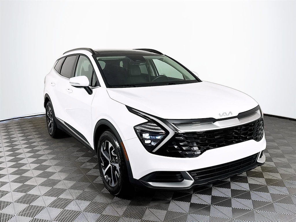 This 2025 Kia Sportage EX in Glacial White Pearl features: Kia Certified Pre-Owned Certified, 4-Wheel Disc Brakes, 6 Speakers, ABS brakes, Air Conditioning, Alloy wheels, AM/FM radio: SiriusXM, Apple CarPlay & Android Auto, Auto High-beam Headlights, Automatic temperature control, Brake assist, Bumpers: body-color, Cargo Mat, Carpeted Floor Mats, Compass, Delay-off headlights, Driver door bin, Driver vanity mirror, Dual front impact airbags, Dual front side impact airbags, EC Mirror w/HomeLink, Electronic Stability Control, Emergency communication system, Four wheel independent suspension, Front anti-roll bar, Front Bucket Seats, Front Center Armrest, Front dual zone A/C, Fully automatic headlights, Heated door mirrors, Heated Front Bucket Seats, Heated front seats, Illuminated Dual Vanity Mirrors, Illuminated entry, Leather Shift Knob, Leather steering wheel, Leatherette Seat Trim, LED Interior Lighting, Low tire pressure warning, Navigation System, Occupant sensing airbag, Outside temperature display, Overhead airbag, Overhead console, Panic alarm, Panoramic Sunroof, Passenger door bin, Passenger vanity mirror, Power door mirrors, Power driver seat, Power steering, Power windows, Premium Package, Radio: AM/FM/HD Audio System, Rain sensing wipers, Rear anti-roll bar, Rear seat center armrest, Rear side impact airbag, Rear window defroster, Rear window wiper, Remote keyless entry, Security system, Smart Power Liftgate, Speed control, Speed-sensing steering, Split folding rear seat, Spoiler, Steering wheel mounted audio controls, Tachometer, Telescoping steering wheel, Tilt steering wheel, Traction control, Trip computer, Turn signal indicator mirrors, Variably intermittent wipers, Wheels: 18" x 7.5J Machined Alloy. Certified. Clean CARFAX. CARFAX One-Owner. Odometer is 2635 miles below market average! 25/32 City/Highway MPG