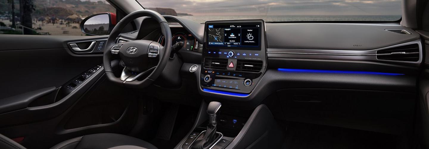 The 2022 Hyundai Ioniq Hybrid interior offers space for five people to fit comfortably. While you can enjoy the standard features and be completely happy, you might consider the available leather seats and heated front seats for even more enhanced comfort. Additionally, the cargo hold is plenty big enough to hold all of your gear. Behind the back seats, there is 26.5 cubic feet of room. With 122.7 cubic feet of interior volume, there’s a space for everyone and everything.