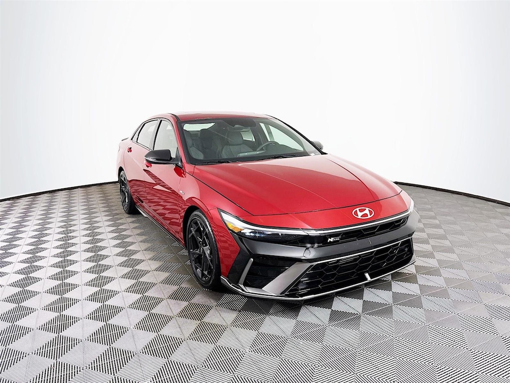 2025 Hyundai Elantra N Line N Line 18" x 7.5J Alloy Wheels, 4-Wheel Disc Brakes, 8 Speakers, ABS brakes, Air Conditioning, Alloy wheels, AM/FM radio: SiriusXM, Apple CarPlay & Android Auto, Auto High-beam Headlights, Automatic temperature control, Brake assist, Bumpers: body-color, Cargo Side Bins, Carpeted Floor Mats, Combination Cloth & Leatherette Seating Surfaces, Delay-off headlights, Driver door bin, Driver vanity mirror, Dual front impact airbags, Dual front side impact airbags, Electronic Stability Control, Emergency communication system: Bluelink+, Exterior Parking Camera Rear, First Aid Kit, Four wheel independent suspension, Front anti-roll bar, Front Bucket Seats, Front Center Armrest, Front dual zone A/C, Front reading lights, Fully automatic headlights, Heated door mirrors, Heated front seats, Heated Front Sport Bucket Seats, Illuminated entry, Leather Shift Knob, Leather steering wheel, Low tire pressure warning, Navigation System, Occupant sensing airbag, Option Group 01, Outside temperature display, Overhead airbag, Overhead console, Panic alarm, Passenger door bin, Passenger vanity mirror, Power door mirrors, Power driver seat, Power moonroof, Power steering, Power windows, Radio: AM/FM/HD/SiriusXM Display Audio, Rear anti-roll bar, Rear seat center armrest, Rear side impact airbag, Rear window defroster, Remote keyless entry, Reversible Cargo Tray, Security system, Speed control, Speed-sensing steering, Split folding rear seat, Spoiler, Sport steering wheel, Steering wheel mounted audio controls, Tachometer, Telescoping steering wheel, Tilt steering wheel, Traction control, Trip computer, Turn signal indicator mirrors, Variably intermittent wipers. 28/35 City/Highway MPG
