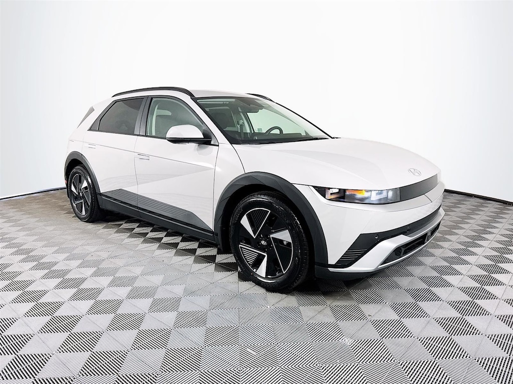 2025 Hyundai IONIQ 5 SEL SEL 4-Wheel Disc Brakes, 6 Speakers, ABS brakes, Air Conditioning, Alloy wheels, AM/FM radio: SiriusXM, Apple CarPlay & Android Auto, Auto High-beam Headlights, Auto-dimming Rear-View mirror, Automatic temperature control, Bodyside moldings, Brake assist, Bumpers: body-color, Cargo Blocks, Cargo Net, Carpeted Floor Mats, Delay-off headlights, Driver door bin, Driver vanity mirror, Dual front impact airbags, Dual front side impact airbags, Electronic Stability Control, Emergency communication system: Bluelink+, First Aid Kit, Four wheel independent suspension, Front anti-roll bar, Front Bucket Seats, Front Center Armrest w/Storage, Front dual zone A/C, Front reading lights, Fully automatic headlights, Garage door transmitter: HomeLink, H-Tex Artifical Leather Seating Surfaces, harman/kardon® Speakers, Heated door mirrors, Heated Front Bucket Seats, Heated front seats, Heated rear seats, Heated steering wheel, Illuminated entry, Leather steering wheel, Low tire pressure warning, Mudguards, Navigation System, Occupant sensing airbag, Option Group 01, Outside temperature display, Overhead airbag, Overhead console, Panic alarm, Passenger door bin, Passenger vanity mirror, Power door mirrors, Power driver seat, Power Liftgate, Power passenger seat, Power steering, Power windows, Radio: AM/FM/SiriusXM/HD Audio System, Rear anti-roll bar, Rear reading lights, Rear seat center armrest, Rear side impact airbag, Rear window defroster, Rear window wiper, Remote keyless entry, Roadside Assistance Kit, Security system, Speed control, Speed-sensing steering, Split folding rear seat, Spoiler, Steering wheel mounted audio controls, Telescoping steering wheel, Tilt steering wheel, Traction control, Trip computer, Turn signal indicator mirrors, Up Seatback Cargo Mat, Variably intermittent wipers, Wheels: 19" x 7.5J Alloy. 129/100 City/Highway MPG