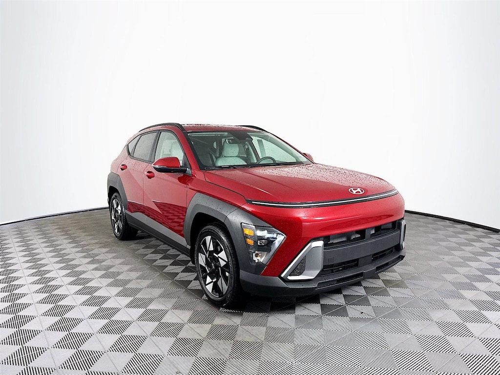 2025 Hyundai Kona SEL Convenience SEL Convenience 4-Wheel Disc Brakes, 6 Speakers, ABS brakes, Air Conditioning, Alloy wheels, AM/FM radio: SiriusXM, Apple CarPlay & Android Auto, Auto High-beam Headlights, Auto-dimming Rear-View mirror, Automatic temperature control, Brake assist, Bumpers: body-color, Cargo Net, Cargo Tray, Carpeted Floor Mats, Cloth Seat Trim, Column-Mounted Shift-By-Wire, Delay-off headlights, Door Sill Plates, Driver door bin, Driver vanity mirror, Dual front impact airbags, Dual front side impact airbags, Electronic Stability Control, Emergency communication system: Bluelink+, Exterior Parking Camera Rear, First Aid Kit, Front anti-roll bar, Front Bucket Seats, Front Center Armrest, Front dual zone A/C, Front reading lights, Front wheel independent suspension, Fully automatic headlights, Heated door mirrors, Heated Front Bucket Seats, Heated front seats, Illuminated entry, Leather steering wheel, Low tire pressure warning, Mud Guards, Navigation System, Occupant sensing airbag, Option Group 01, Outside temperature display, Overhead airbag, Panic alarm, Passenger door bin, Passenger vanity mirror, Power door mirrors, Power driver seat, Power steering, Power windows, Radio: AM/FM/HD Radio/SiriusXM w/Navigation, Rear seat center armrest, Rear window defroster, Rear window wiper, Remote keyless entry, Security system, Speed control, Speed-sensing steering, Split folding rear seat, Spoiler, Steering wheel mounted audio controls, Tachometer, Telescoping steering wheel, Tilt steering wheel, Traction control, Trip computer, Turn signal indicator mirrors, Variably intermittent wipers, Wheels: 18" x 7.0J Glossy Black Alloy. 28/35 City/Highway MPG
