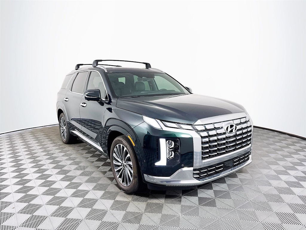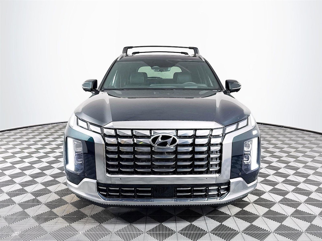 2025 Hyundai Palisade Calligraphy Calligraphy 12 Speakers, 3rd row seats: split-bench, 4-Wheel Disc Brakes, ABS brakes, Air Conditioning, Alloy wheels, AM/FM radio: SiriusXM, Apple CarPlay & Android Auto, Auto High-beam Headlights, Auto-dimming door mirrors, Auto-dimming Rear-View mirror, Auto-leveling suspension, Automatic temperature control, Brake assist, Bumpers: body-color, Cargo Blocks, Cargo Net, Cargo Tray, Carpeted Floor Mats, Compass, Cross Rails, Delay-off headlights, Driver door bin, Driver vanity mirror, Dual front impact airbags, Dual front side impact airbags, Electronic Stability Control, Emergency communication system, Exterior Parking Camera Rear, First Aid Kit, Four wheel independent suspension, Front anti-roll bar, Front Bucket Seats, Front Center Armrest, Front dual zone A/C, Front reading lights, Fully automatic headlights, Garage door transmitter: HomeLink, harman/kardon® Speakers, Heads-Up Display, Heated & Ventilated Front Bucket Seats, Heated door mirrors, Heated front seats, Heated rear seats, Heated steering wheel, Illuminated entry, Knee airbag, Leather steering wheel, Low tire pressure warning, Memory seat, Navigation System, Occupant sensing airbag, Option Group 01, Outside temperature display, Overhead airbag, Overhead console, Panic alarm, Passenger door bin, Passenger vanity mirror, Power door mirrors, Power driver seat, Power Liftgate, Power moonroof, Power passenger seat, Power steering, Power windows, Premium Nappa Leather Seat Trim, Radio data system, Radio: AM/FM/MP3 Premium Audio System, Rain sensing wipers, Rear air conditioning, Rear anti-roll bar, Rear audio controls, Rear reading lights, Rear side impact airbag, Rear window defroster, Rear window wiper, Reclining 3rd row seat, Remote keyless entry, Security system, Speed control, Speed-sensing steering, Split folding rear seat, Spoiler, Steering wheel mounted audio controls, Tachometer, Telescoping steering wheel, Tilt steering wheel, Traction control, Trip computer, Turn signal indicator mirrors, Variably intermittent wipers, Ventilated front seats, Ventilated rear seats, Wheels: 20" x 7.5J Calligraphy Exclusive Alloy. 19/26 City/Highway MPG
