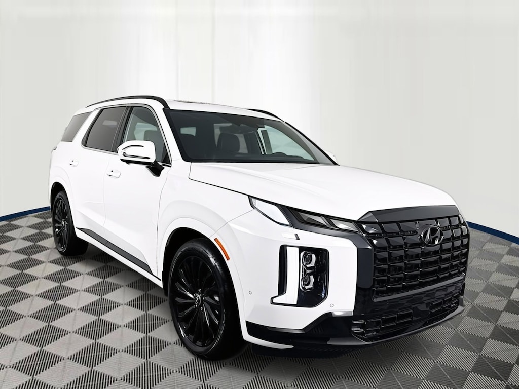 2025 Hyundai Palisade Calligraphy Night Edition Calligraphy Night Edition 12 Speakers, 3rd row seats: split-bench, 4-Wheel Disc Brakes, ABS brakes, Air Conditioning, All-Season Fitted Liners, Alloy wheels, AM/FM radio: SiriusXM, Apple CarPlay & Android Auto, Auto High-beam Headlights, Auto-dimming door mirrors, Auto-dimming Rear-View mirror, Auto-leveling suspension, Automatic temperature control, Brake assist, Bumpers: body-color, Cargo Blocks, Cargo Net, Cargo Tray, Compass, Delay-off headlights, Driver door bin, Driver vanity mirror, Dual front impact airbags, Dual front side impact airbags, Electronic Stability Control, Emergency communication system, Exterior Parking Camera Rear, First Aid Kit, Four wheel independent suspension, Front anti-roll bar, Front Bucket Seats, Front Center Armrest, Front dual zone A/C, Front reading lights, Fully automatic headlights, Garage door transmitter: HomeLink, harman/kardon® Speakers, Heads-Up Display, Heated & Ventilated Front Bucket Seats, Heated door mirrors, Heated front seats, Heated rear seats, Heated steering wheel, Illuminated entry, Knee airbag, Leather steering wheel, Low tire pressure warning, Memory seat, Microfiber Suede Seat Trim, Mudguards, Navigation System, Occupant sensing airbag, Option Group 01, Outside temperature display, Overhead airbag, Overhead console, Panic alarm, Passenger door bin, Passenger vanity mirror, Power door mirrors, Power driver seat, Power Liftgate, Power moonroof, Power passenger seat, Power steering, Power windows, Radio data system, Radio: AM/FM/MP3 Premium Audio System, Rain sensing wipers, Rear air conditioning, Rear anti-roll bar, Rear audio controls, Rear reading lights, Rear side impact airbag, Rear window defroster, Rear window wiper, Reclining 3rd row seat, Remote keyless entry, Roadside Assistance Kit, Roof rack, Security system, Severe Weather Kit, Speed control, Speed-sensing steering, Split folding rear seat, Spoiler, Steering wheel mounted audio controls, Tachometer, Telescoping steering wheel, Tilt steering wheel, Traction control, Trip computer, Turn signal indicator mirrors, Variably intermittent wipers, Ventilated front seats, Ventilated rear seats, Wheels: 20" x 7.5J Black Liquid Paint Alloy.