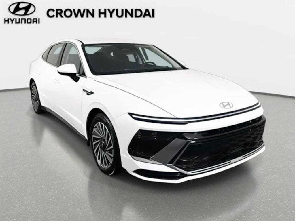2025 Hyundai Sonata Hybrid SEL SEL I4, 17" x 7.0J Aluminum Alloy Wheels, 4-Wheel Disc Brakes, 6 Speakers, ABS brakes, Air Conditioning, Alloy wheels, AM/FM radio: SiriusXM, Apple CarPlay & Android Auto, Auto High-beam Headlights, Automatic temperature control, Brake assist, Bumpers: body-color, Cargo Net, Cargo Tray, Carpeted Floor Mats, Cloth Seating Surfaces, Delay-off headlights, Driver door bin, Driver vanity mirror, Dual front impact airbags, Dual front side impact airbags, Electronic Stability Control, Emergency communication system: Bluelink+, Four wheel independent suspension, Front anti-roll bar, Front Bucket Seats, Front Center Armrest, Front dual zone A/C, Front reading lights, Fully automatic headlights, Heated door mirrors, Heated Front Bucket Seats, Heated front seats, Illuminated entry, Knee airbag, Lane Departure Warning System, Leather steering wheel, Low tire pressure warning, Mud Guards, Occupant sensing airbag, Option Group 01, Outside temperature display, Overhead airbag, Overhead console, Panic alarm, Passenger door bin, Passenger vanity mirror, Power door mirrors, Power driver seat, Power passenger seat, Power steering, Power windows, Radio data system, Radio: AM/FM/HD/SiriusXM, Rear anti-roll bar, Rear seat center armrest, Rear side impact airbag, Rear window defroster, Remote keyless entry, Security system, Speed control, Speed-sensing steering, Speed-Sensitive Wipers, Split folding rear seat, Spoiler, Steering wheel mounted audio controls, Tachometer, Telescoping steering wheel, Tilt steering wheel, Traction control, Trip computer, Variably intermittent wipers, I4. 44/51 City/Highway MPG