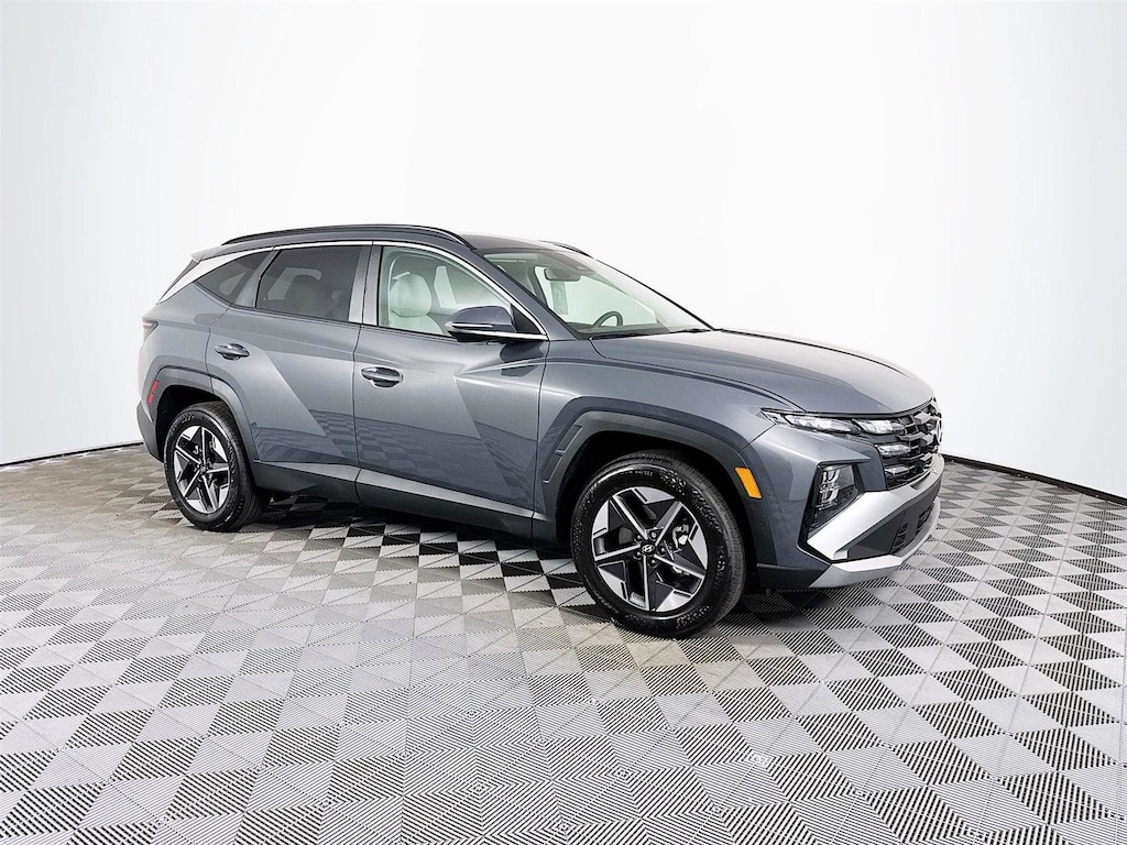 2025 Hyundai Tucson SEL Convenience SEL Convenience AWD, 18" Alloy Wheels, 4-Wheel Disc Brakes, 6 Speakers, ABS brakes, Air Conditioning, Alloy wheels, AM/FM radio: SiriusXM, Apple CarPlay & Android Auto, Auto High-beam Headlights, Auto-dimming Rear-View mirror, Automatic temperature control, Brake assist, Bumpers: body-color, Cargo Organizer, Cargo Tray, Carpeted Floor Mats, Delay-off headlights, Driver door bin, Driver vanity mirror, Dual front impact airbags, Dual front side impact airbags, Electronic Stability Control, Emergency communication system: Bluelink+, First Aid Kit, Four wheel independent suspension, Front anti-roll bar, Front Bucket Seats, Front Center Armrest, Front dual zone A/C, Front reading lights, Fully automatic headlights, H-Tex Seat Trim, Heated door mirrors, Heated Front Bucket Seats, Heated front seats, Illuminated Door Sill Plates, Illuminated entry, Leather steering wheel, Low tire pressure warning, Navigation System, Occupant sensing airbag, Option Group 01, Outside temperature display, Overhead airbag, Overhead console, Panic alarm, Passenger door bin, Passenger vanity mirror, Power door mirrors, Power driver seat, Power Liftgate, Power moonroof, Power steering, Power windows, Radio data system, Radio: AM/FM/HD Audio System, Rear anti-roll bar, Rear reading lights, Rear seat center armrest, Rear side impact airbag, Rear window defroster, Rear window wiper, Remote keyless entry, Roadside Assistance Kit, Security system, Speed control, Split folding rear seat, Spoiler, Steering wheel mounted audio controls, Tachometer, Telescoping steering wheel, Tilt steering wheel, Traction control, Trip computer, Turn signal indicator mirrors, Variably intermittent wipers, AWD. 24/30 City/Highway MPG