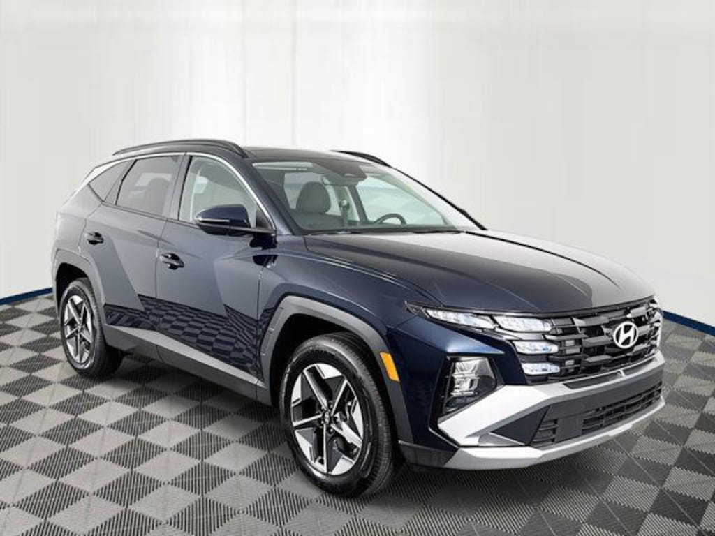 2025 Hyundai Tucson Hybrid SEL Convenience SEL Convenience 1.6L I4 DGI Hybrid Turbocharged DOHC 16V LEV3-SULEV30, 18" Alloy Wheels, 4-Wheel Disc Brakes, 6 Speakers, ABS brakes, Air Conditioning, Alloy wheels, AM/FM radio: SiriusXM, Apple CarPlay & Android Auto, Auto High-beam Headlights, Auto-dimming Rear-View mirror, Automatic temperature control, Brake assist, Bumpers: body-color, Cargo Cover, Cargo Tray, Carpeted Floor Mats, Delay-off headlights, Driver door bin, Driver vanity mirror, Dual front impact airbags, Dual front side impact airbags, Electronic Stability Control, Emergency communication system: Bluelink+, First Aid Kit, Four wheel independent suspension, Front anti-roll bar, Front Bucket Seats, Front Center Armrest, Front dual zone A/C, Front reading lights, Fully automatic headlights, H-Tex Seat Trim, Heated door mirrors, Heated Front Bucket Seats, Heated front seats, Illuminated entry, Leather steering wheel, Low tire pressure warning, Navigation System, Occupant sensing airbag, Option Group 01, Outside temperature display, Overhead airbag, Overhead console, Panic alarm, Passenger door bin, Passenger vanity mirror, Power door mirrors, Power driver seat, Power Liftgate, Power moonroof, Power steering, Power windows, Radio data system, Radio: AM/FM/HD Audio System, Rear anti-roll bar, Rear reading lights, Rear seat center armrest, Rear side impact airbag, Rear window defroster, Rear window wiper, Remote keyless entry, Security system, Speed control, Split folding rear seat, Spoiler, Steering wheel mounted audio controls, Tachometer, Telescoping steering wheel, Tilt steering wheel, Traction control, Trip computer, Turn signal indicator mirrors, Variably intermittent wipers, 1.6L I4 DGI Hybrid Turbocharged DOHC 16V LEV3-SULEV30. 37/36 City/Highway MPG