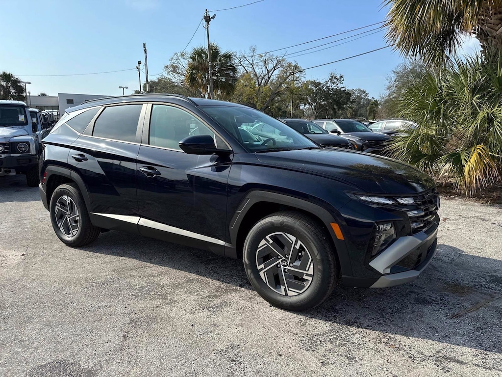2025 Hyundai Tucson Hybrid Blue Blue 1.6L I4 DGI Hybrid Turbocharged DOHC 16V LEV3-SULEV30, 17" Alloy Wheels, 4-Wheel Disc Brakes, 6 Speakers, ABS brakes, Air Conditioning, All Season Fitted Liners, Alloy wheels, AM/FM radio: SiriusXM, Apple CarPlay & Android Auto, Auto High-beam Headlights, Automatic temperature control, Brake assist, Bumpers: body-color, Cargo Tray, Delay-off headlights, Driver door bin, Driver vanity mirror, Dual front impact airbags, Dual front side impact airbags, Electronic Stability Control, Emergency communication system: Bluelink+, First Aid Kit, Four wheel independent suspension, Front anti-roll bar, Front Bucket Seats, Front Center Armrest, Front dual zone A/C, Front reading lights, Fully automatic headlights, Heated door mirrors, Heated Front Bucket Seats, Heated front seats, Illuminated entry, Low tire pressure warning, Occupant sensing airbag, Option Group 01, Outside temperature display, Overhead airbag, Overhead console, Panic alarm, Passenger door bin, Passenger vanity mirror, Power door mirrors, Power driver seat, Power Liftgate, Power steering, Power windows, Radio data system, Radio: AM/FM/HD Audio System, Rear anti-roll bar, Rear reading lights, Rear seat center armrest, Rear side impact airbag, Rear window defroster, Rear window wiper, Remote keyless entry, Roadside Assistance Kit, Security system, Speed control, Split folding rear seat, Spoiler, Stain & Odor Resistant Cloth Seat Trim, Steering wheel mounted audio controls, Tachometer, Telescoping steering wheel, Tilt steering wheel, Traction control, Trip computer, Variably intermittent wipers, Wheel Locks, 1.6L I4 DGI Hybrid Turbocharged DOHC 16V LEV3-SULEV30. 38/38 City/Highway MPG