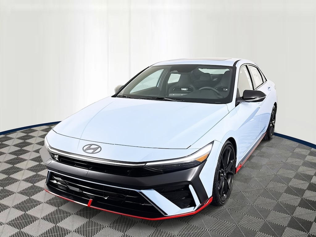 2026 Hyundai Elantra N Base 4-Wheel Disc Brakes, 8 Speakers, ABS brakes, Air Conditioning, Alloy wheels, AM/FM radio: SiriusXM, Apple CarPlay & Android Auto, Auto High-beam Headlights, Automatic temperature control, Brake assist, Bumpers: body-color, Cargo Net, Compass, Delay-off headlights, Driver door bin, Driver vanity mirror, Dual front impact airbags, Dual front side impact airbags, Electronic Stability Control, Emergency communication system: None, Exterior Parking Camera Rear, First Aid Kit, Four wheel independent suspension, Front anti-roll bar, Front Bucket Seats, Front Center Armrest w/Storage, Front dual zone A/C, Front reading lights, Fully automatic headlights, Heated door mirrors, Heated front seats, Illuminated entry, Leather Shift Knob, Leather steering wheel, Leather/Alcantara Seat Trim, Low tire pressure warning, N Light Heated Sport Bucket Seats, Navigation System, Occupant sensing airbag, Option Group 01, Outside temperature display, Overhead airbag, Overhead console, Panic alarm, Passenger door bin, Passenger vanity mirror, Power door mirrors, Power moonroof, Power steering, Power windows, Radio: Bose AM/FM/HD/SXM Audio System, Rear side impact airbag, Rear window defroster, Remote keyless entry, Reversible Cargo Tray, Security system, Speed control, Speed-sensing steering, Spoiler, Steering wheel mounted audio controls, Tachometer, Telescoping steering wheel, Tilt steering wheel, Traction control, Trip computer, Turn signal indicator mirrors, Variably intermittent wipers, Wheels: 19" x 8.0" Forged Alloy. 20/27 City/Highway MPG