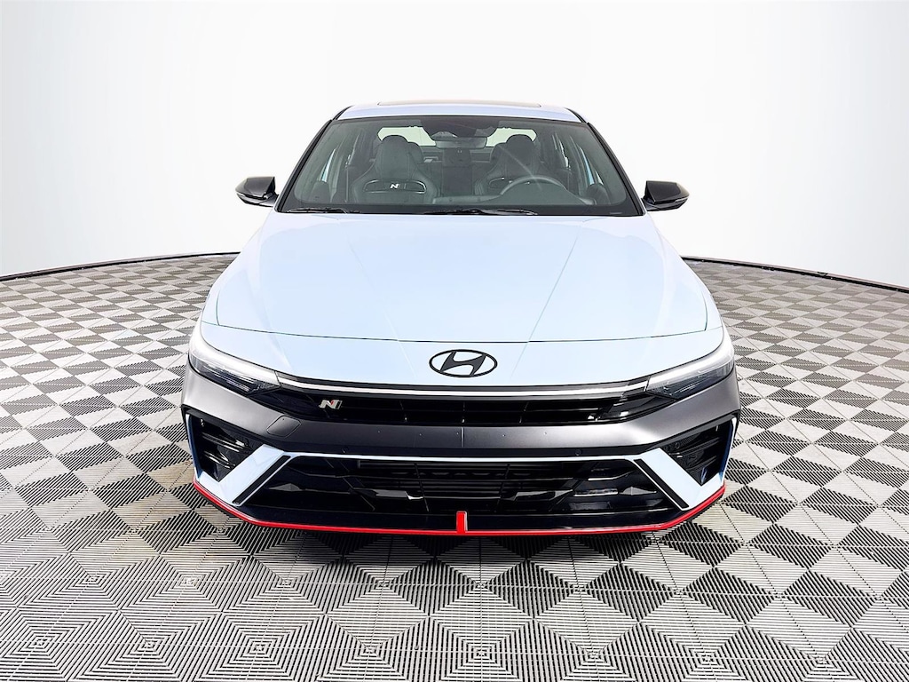 2026 Hyundai Elantra N Base 4-Wheel Disc Brakes, 8 Speakers, ABS brakes, Air Conditioning, Alloy wheels, AM/FM radio: SiriusXM, Apple CarPlay & Android Auto, Auto High-beam Headlights, Automatic temperature control, Brake assist, Bumpers: body-color, Cargo Net, Compass, Delay-off headlights, Driver door bin, Driver vanity mirror, Dual front impact airbags, Dual front side impact airbags, Electronic Stability Control, Emergency communication system: None, Exterior Parking Camera Rear, First Aid Kit, Four wheel independent suspension, Front anti-roll bar, Front Bucket Seats, Front Center Armrest w/Storage, Front dual zone A/C, Front reading lights, Fully automatic headlights, Heated door mirrors, Heated front seats, Illuminated entry, Leather Shift Knob, Leather steering wheel, Leather/Alcantara Seat Trim, Low tire pressure warning, N Light Heated Sport Bucket Seats, Navigation System, Occupant sensing airbag, Option Group 01, Outside temperature display, Overhead airbag, Overhead console, Panic alarm, Passenger door bin, Passenger vanity mirror, Power door mirrors, Power moonroof, Power steering, Power windows, Radio: Bose AM/FM/HD/SXM Audio System, Rear side impact airbag, Rear window defroster, Remote keyless entry, Reversible Cargo Tray, Roadside Assistance Kit, Security system, Speed control, Speed-sensing steering, Spoiler, Steering wheel mounted audio controls, Tachometer, Telescoping steering wheel, Tilt steering wheel, Traction control, Trip computer, Turn signal indicator mirrors, Variably intermittent wipers, Wheels: 19" x 8.0" Forged Alloy. 20/27 City/Highway MPG