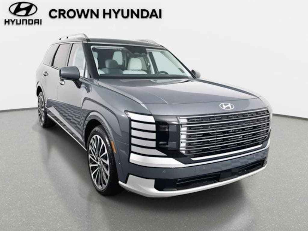 2026 Hyundai Palisade Calligraphy Calligraphy 14 Speakers, 3rd row seats: split-bench, 4-Wheel Disc Brakes, ABS brakes, Air Conditioning, All-Season Fitted Liners, Alloy wheels, AM/FM radio: SiriusXM, Apple CarPlay & Android Auto, Audio memory, Auto High-beam Headlights, Auto-dimming door mirrors, Auto-dimming Rear-View mirror, Auto-leveling suspension, Automatic temperature control, Brake assist, Bumpers: body-color, Cargo Blocks, Cargo Organizer, Carpeted Floor Mats, Compass, Delay-off headlights, Driver door bin, Driver vanity mirror, Dual front impact airbags, Dual front side impact airbags, Electronic Stability Control, Emergency communication system: None, Exterior Parking Camera Rear, First Aid Kit, Four wheel independent suspension, Front anti-roll bar, Front Bucket Seats, Front Center Armrest, Front dual zone A/C, Front reading lights, Fully automatic headlights, Garage door transmitter: HomeLink, Genuine wood console insert, Genuine wood dashboard insert, Heads-Up Display, Heated and Ventilated Front Bucket Seats, Heated door mirrors, Heated front seats, Heated rear seats, Heated steering wheel, HVAC memory, Illuminated entry, Knee airbag, Leather steering wheel, Low tire pressure warning, Memory seat, Navigation System, Occupant sensing airbag, Option Group 01, Outside temperature display, Overhead airbag, Overhead console, Panic alarm, Passenger door bin, Passenger vanity mirror, Power door mirrors, Power driver seat, Power Liftgate, Power moonroof, Power passenger seat, Power steering, Power windows, Premium Nappa Leather Seat Trim, Radio data system, Radio: Infotainment Navigation System, Rain sensing wipers, Rear air conditioning, Rear anti-roll bar, Rear audio controls, Rear reading lights, Rear side impact airbag, Rear window defroster, Rear window wiper, Reclining 3rd row seat, Remote keyless entry, Security system, Speed control, Split folding rear seat, Spoiler, Steering wheel mounted audio controls, Tachometer, Telescoping steering wheel, Tilt steering wheel, Traction control, Trip computer, Turn signal indicator mirrors, Variably intermittent wipers, Ventilated front seats, Ventilated rear seats, Wheels: 21" x 8.5J Alloy.