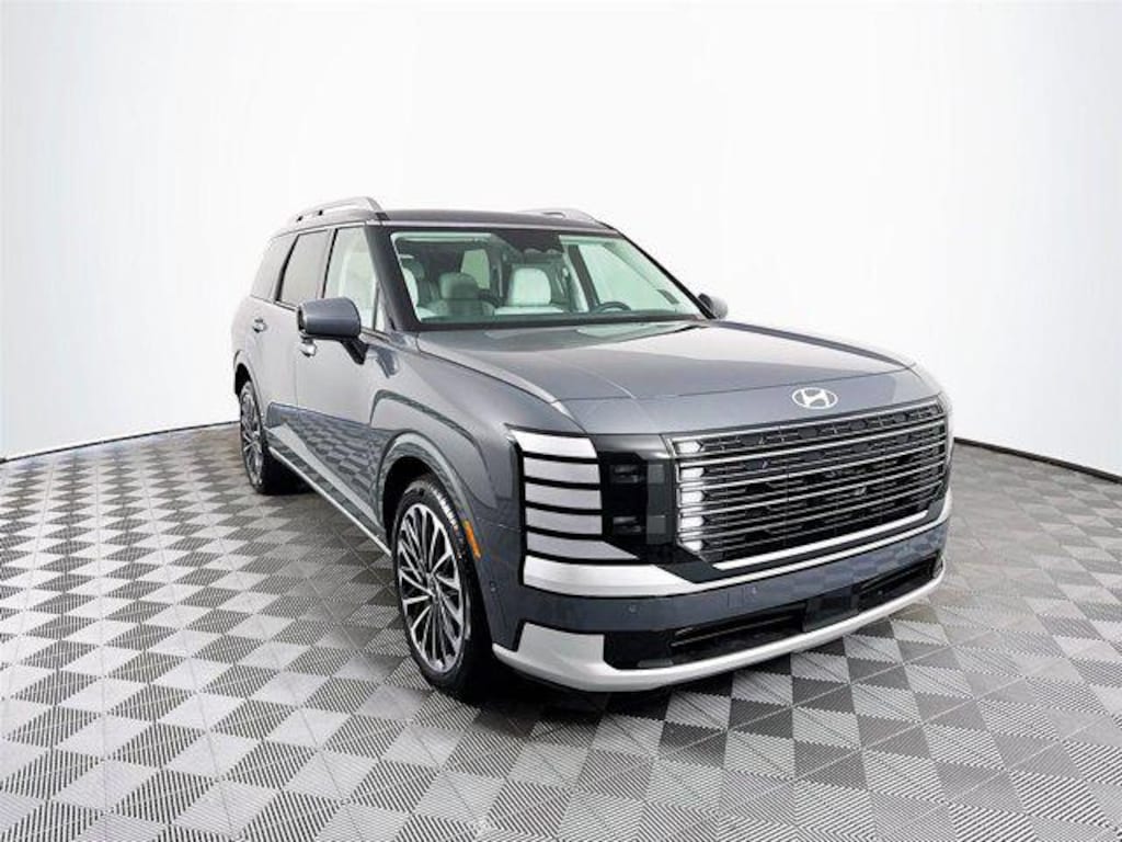 2026 Hyundai Palisade Calligraphy Calligraphy 14 Speakers, 3rd row seats: split-bench, 4-Wheel Disc Brakes, ABS brakes, Air Conditioning, All-Season Fitted Liners, Alloy wheels, AM/FM radio: SiriusXM, Apple CarPlay & Android Auto, Audio memory, Auto High-beam Headlights, Auto-dimming door mirrors, Auto-dimming Rear-View mirror, Auto-leveling suspension, Automatic temperature control, Brake assist, Bumpers: body-color, Cargo Cover, Cargo Net, Cargo Tray, Carpeted Floor Mats, Compass, Delay-off headlights, Driver door bin, Driver vanity mirror, Dual front impact airbags, Dual front side impact airbags, Electronic Stability Control, Emergency communication system: Bluelink+, Exterior Parking Camera Rear, Four wheel independent suspension, Front anti-roll bar, Front Bucket Seats, Front Center Armrest, Front dual zone A/C, Front reading lights, Fully automatic headlights, Garage door transmitter: HomeLink, Genuine wood console insert, Genuine wood dashboard insert, Heads-Up Display, Heated & Ventilated Front Bucket Seats, Heated door mirrors, Heated front seats, Heated rear seats, Heated steering wheel, HVAC memory, Illuminated entry, Knee airbag, Leather steering wheel, Low tire pressure warning, Memory seat, Navigation System, Occupant sensing airbag, Option Group 01, Outside temperature display, Overhead airbag, Overhead console, Panic alarm, Passenger door bin, Passenger vanity mirror, Power door mirrors, Power driver seat, Power Liftgate, Power moonroof, Power passenger seat, Power steering, Power windows, Premium Nappa Leather Seat Trim, Radio data system, Radio: Infotainment Navigation System, Rain sensing wipers, Rear air conditioning, Rear anti-roll bar, Rear audio controls, Rear reading lights, Rear side impact airbag, Rear window defroster, Rear window wiper, Reclining 3rd row seat, Remote keyless entry, Security system, Speed control, Split folding rear seat, Spoiler, Steering wheel mounted audio controls, Tachometer, Telescoping steering wheel, Tilt steering wheel, Traction control, Trip computer, Turn signal indicator mirrors, Variably intermittent wipers, Ventilated front seats, Ventilated rear seats, Wheels: 21" x 8.5J Alloy.