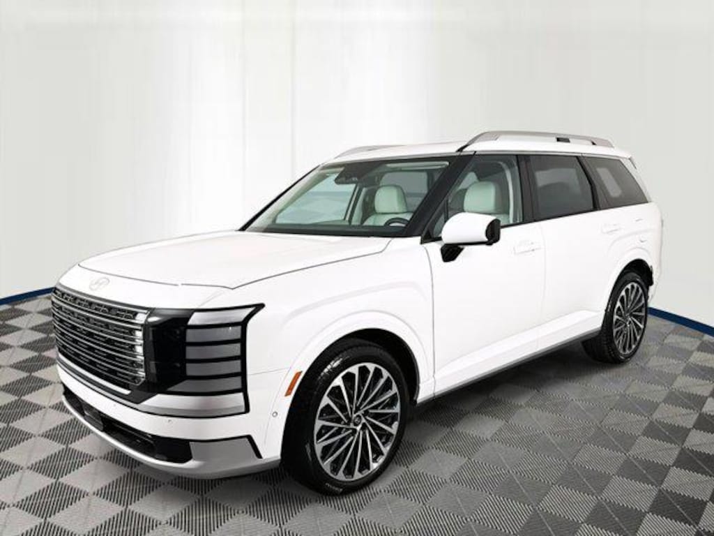 2026 Hyundai Palisade Calligraphy Calligraphy 14 Speakers, 3rd row seats: split-bench, 4-Wheel Disc Brakes, ABS brakes, Air Conditioning, All-Season Fitted Liners, Alloy wheels, AM/FM radio: SiriusXM, Apple CarPlay & Android Auto, Audio memory, Auto High-beam Headlights, Auto-dimming door mirrors, Auto-dimming Rear-View mirror, Auto-leveling suspension, Automatic temperature control, Brake assist, Bumpers: body-color, Cargo Blocks, Cargo Net, Carpeted Floor Mats, Compass, Delay-off headlights, Driver door bin, Driver vanity mirror, Dual front impact airbags, Dual front side impact airbags, Electronic Stability Control, Emergency communication system: Bluelink+, Exterior Parking Camera Rear, First Aid Kit, Four wheel independent suspension, Front anti-roll bar, Front Bucket Seats, Front Center Armrest, Front dual zone A/C, Front reading lights, Fully automatic headlights, Garage door transmitter: HomeLink, Genuine wood console insert, Genuine wood dashboard insert, Heads-Up Display, Heated & Ventilated Front Bucket Seats, Heated door mirrors, Heated front seats, Heated rear seats, Heated steering wheel, HVAC memory, Illuminated entry, Knee airbag, Leather steering wheel, Low tire pressure warning, Memory seat, Navigation System, Occupant sensing airbag, Option Group 01, Outside temperature display, Overhead airbag, Overhead console, Panic alarm, Passenger door bin, Passenger vanity mirror, Power door mirrors, Power driver seat, Power Liftgate, Power moonroof, Power passenger seat, Power steering, Power windows, Premium Nappa Leather Seat Trim, Radio data system, Radio: Infotainment Navigation System, Rain sensing wipers, Rear air conditioning, Rear anti-roll bar, Rear audio controls, Rear reading lights, Rear side impact airbag, Rear window defroster, Rear window wiper, Reclining 3rd row seat, Remote keyless entry, Roadside Assistance Kit, Security system, Speed control, Split folding rear seat, Spoiler, Steering wheel mounted audio controls, Tachometer, Telescoping steering wheel, Tilt steering wheel, Traction control, Trip computer, Turn signal indicator mirrors, Variably intermittent wipers, Ventilated front seats, Ventilated rear seats, Wheels: 21" x 8.5J Alloy.