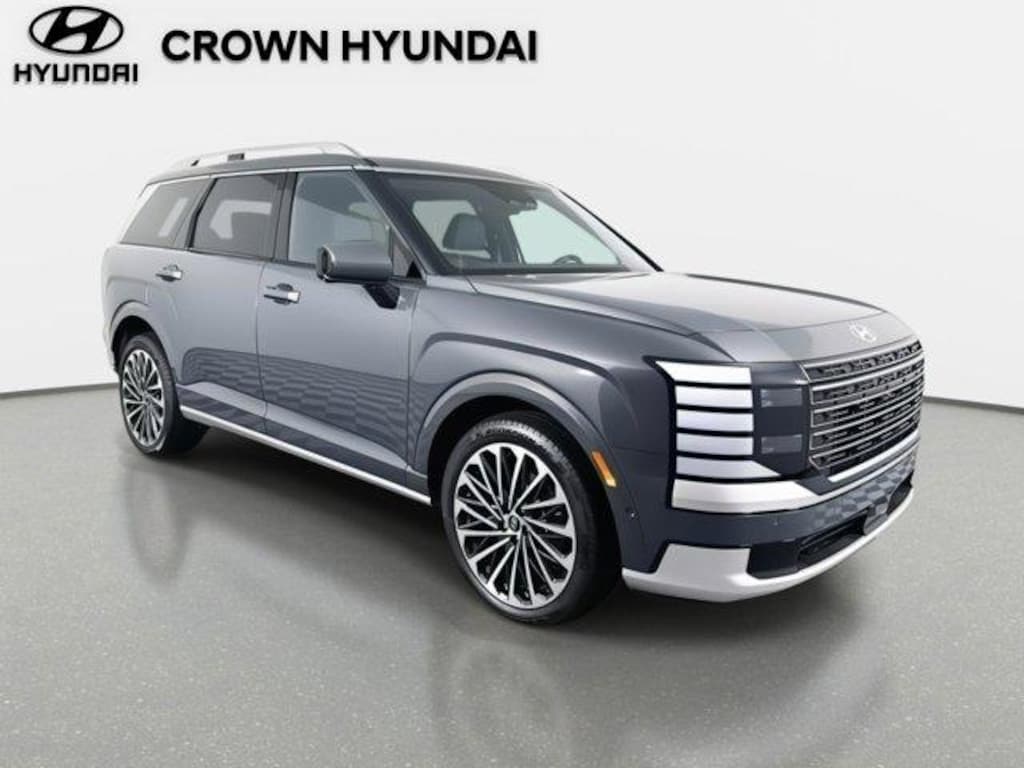 2026 Hyundai Palisade Calligraphy Calligraphy 14 Speakers, 3rd row seats: split-bench, 4-Wheel Disc Brakes, ABS brakes, Air Conditioning, Alloy wheels, AM/FM radio: SiriusXM, Apple CarPlay & Android Auto, Audio memory, Auto High-beam Headlights, Auto-dimming door mirrors, Auto-dimming Rear-View mirror, Auto-leveling suspension, Automatic temperature control, Brake assist, Bumpers: body-color, Cargo Blocks, Cargo Organizer, Carpeted Floor Mats, Compass, Delay-off headlights, Driver door bin, Driver vanity mirror, Dual front impact airbags, Dual front side impact airbags, Electronic Stability Control, Emergency communication system: None, Exterior Parking Camera Rear, First Aid Kit, Four wheel independent suspension, Front anti-roll bar, Front Bucket Seats, Front Center Armrest, Front dual zone A/C, Front reading lights, Fully automatic headlights, Garage door transmitter: HomeLink, Genuine wood console insert, Genuine wood dashboard insert, Heads-Up Display, Heated and Ventilated Front Bucket Seats, Heated door mirrors, Heated front seats, Heated rear seats, Heated steering wheel, HVAC memory, Illuminated entry, Knee airbag, Leather steering wheel, Low tire pressure warning, Memory seat, Navigation System, Occupant sensing airbag, Option Group 01, Outside temperature display, Overhead airbag, Overhead console, Panic alarm, Passenger door bin, Passenger vanity mirror, Power door mirrors, Power driver seat, Power Liftgate, Power moonroof, Power passenger seat, Power steering, Power windows, Premium Nappa Leather Seat Trim, Radio data system, Radio: Infotainment Navigation System, Rain sensing wipers, Rear air conditioning, Rear anti-roll bar, Rear audio controls, Rear reading lights, Rear side impact airbag, Rear window defroster, Rear window wiper, Reclining 3rd row seat, Remote keyless entry, Security system, Speed control, Split folding rear seat, Spoiler, Steering wheel mounted audio controls, Tachometer, Telescoping steering wheel, Tilt steering wheel, Traction control, Trip computer, Turn signal indicator mirrors, Variably intermittent wipers, Ventilated front seats, Ventilated rear seats, Wheels: 21" x 8.5J Alloy.