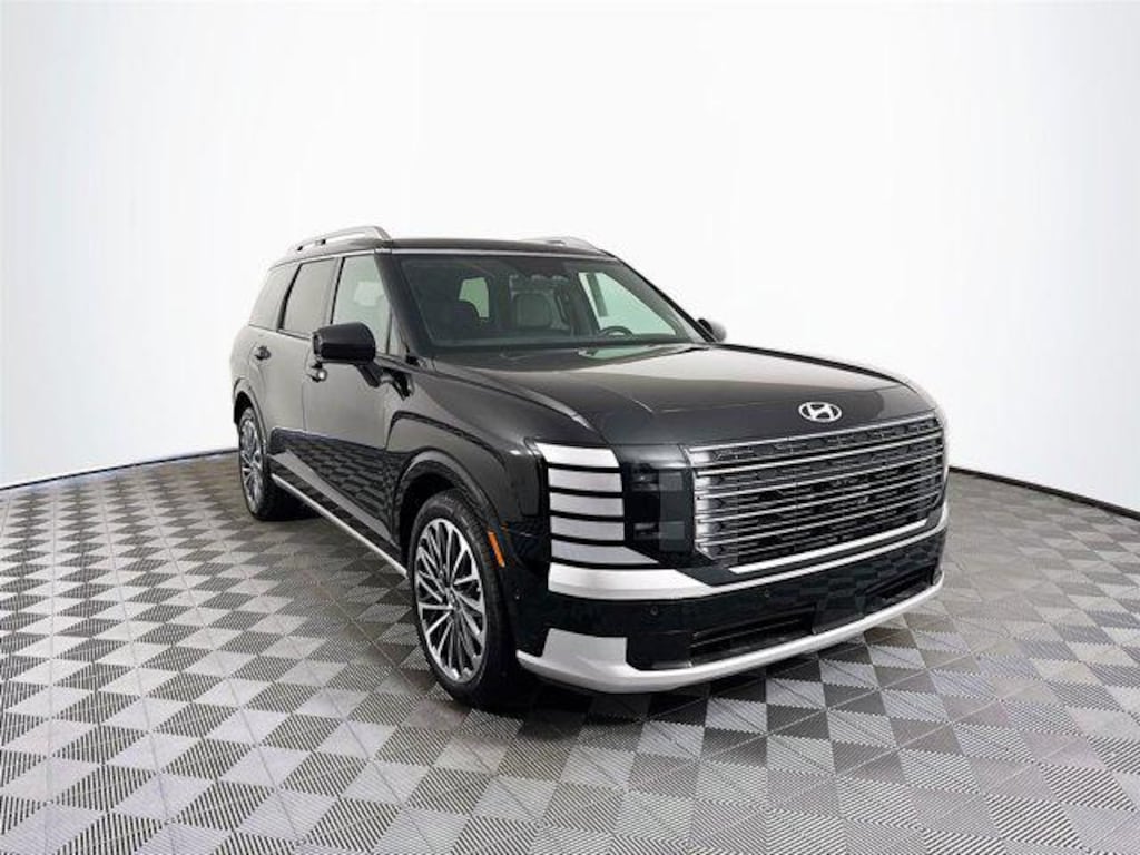 2026 Hyundai Palisade Calligraphy Calligraphy 14 Speakers, 3rd row seats: split-bench, 4-Wheel Disc Brakes, ABS brakes, Air Conditioning, All-Season Fitted Liners, Alloy wheels, AM/FM radio: SiriusXM, Apple CarPlay & Android Auto, Audio memory, Auto High-beam Headlights, Auto-dimming door mirrors, Auto-dimming Rear-View mirror, Auto-leveling suspension, Automatic temperature control, Brake assist, Bumpers: body-color, Cargo Blocks, Cargo Net, Cargo Organizer, Carpeted Floor Mats, Compass, Delay-off headlights, Driver door bin, Driver vanity mirror, Dual front impact airbags, Dual front side impact airbags, Electronic Stability Control, Emergency communication system: Bluelink+, Exterior Parking Camera Rear, First Aid Kit, Four wheel independent suspension, Front anti-roll bar, Front Bucket Seats, Front Center Armrest, Front dual zone A/C, Front reading lights, Fully automatic headlights, Garage door transmitter: HomeLink, Genuine wood console insert, Genuine wood dashboard insert, Heads-Up Display, Heated & Ventilated Front Bucket Seats, Heated door mirrors, Heated front seats, Heated rear seats, Heated steering wheel, HVAC memory, Illuminated entry, Knee airbag, Leather steering wheel, Low tire pressure warning, Memory seat, Navigation System, Occupant sensing airbag, Option Group 01, Outside temperature display, Overhead airbag, Overhead console, Panic alarm, Passenger door bin, Passenger vanity mirror, Power door mirrors, Power driver seat, Power Liftgate, Power moonroof, Power passenger seat, Power steering, Power windows, Premium Nappa Leather Seat Trim, Radio data system, Radio: Infotainment Navigation System, Rain sensing wipers, Rear air conditioning, Rear anti-roll bar, Rear audio controls, Rear reading lights, Rear side impact airbag, Rear window defroster, Rear window wiper, Reclining 3rd row seat, Remote keyless entry, Security system, Speed control, Split folding rear seat, Spoiler, Steering wheel mounted audio controls, Tachometer, Telescoping steering wheel, Tilt steering wheel, Traction control, Trip computer, Turn signal indicator mirrors, Variably intermittent wipers, Ventilated front seats, Ventilated rear seats, Wheels: 21" x 8.5J Alloy.