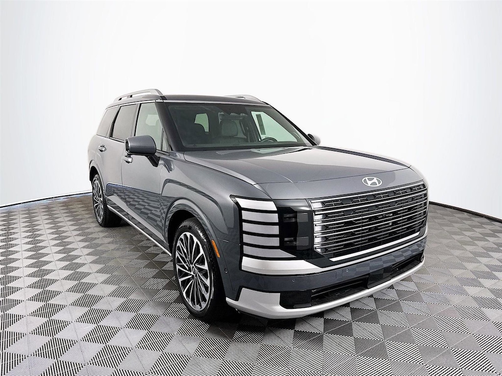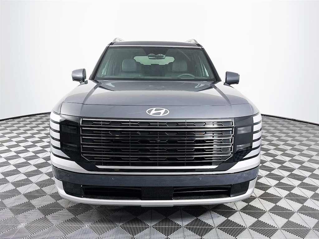 2026 Hyundai Palisade Calligraphy Calligraphy 14 Speakers, 3rd row seats: split-bench, 4-Wheel Disc Brakes, ABS brakes, Air Conditioning, Alloy wheels, AM/FM radio: SiriusXM, Apple CarPlay & Android Auto, Audio memory, Auto High-beam Headlights, Auto-dimming door mirrors, Auto-dimming Rear-View mirror, Auto-leveling suspension, Automatic temperature control, Brake assist, Bumpers: body-color, Cargo Blocks, Cargo Net, Carpeted Floor Mats, Compass, Delay-off headlights, Driver door bin, Driver vanity mirror, Dual front impact airbags, Dual front side impact airbags, Electronic Stability Control, Emergency communication system: Bluelink+, Exterior Parking Camera Rear, First Aid Kit, Four wheel independent suspension, Front anti-roll bar, Front Bucket Seats, Front Center Armrest, Front dual zone A/C, Front reading lights, Fully automatic headlights, Garage door transmitter: HomeLink, Genuine wood console insert, Genuine wood dashboard insert, Heads-Up Display, Heated & Ventilated Front Bucket Seats, Heated door mirrors, Heated front seats, Heated rear seats, Heated steering wheel, HVAC memory, Illuminated entry, Knee airbag, Leather steering wheel, Low tire pressure warning, Memory seat, Navigation System, Occupant sensing airbag, Option Group 01, Outside temperature display, Overhead airbag, Overhead console, Panic alarm, Passenger door bin, Passenger vanity mirror, Power door mirrors, Power driver seat, Power Liftgate, Power moonroof, Power passenger seat, Power steering, Power windows, Premium Nappa Leather Seat Trim, Radio data system, Radio: Infotainment Navigation System, Rain sensing wipers, Rear air conditioning, Rear anti-roll bar, Rear audio controls, Rear reading lights, Rear side impact airbag, Rear window defroster, Rear window wiper, Reclining 3rd row seat, Remote keyless entry, Security system, Severe Weather Kit, Speed control, Split folding rear seat, Spoiler, Steering wheel mounted audio controls, Tachometer, Telescoping steering wheel, Tilt steering wheel, Traction control, Trip computer, Turn signal indicator mirrors, Variably intermittent wipers, Ventilated front seats, Ventilated rear seats, Wheels: 21" x 8.5J Alloy.