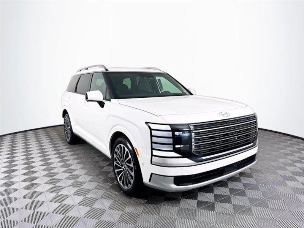 2026 Hyundai Palisade Calligraphy Calligraphy 14 Speakers, 3rd row seats: split-bench, 4-Wheel Disc Brakes, ABS brakes, Air Conditioning, All-Season Fitted Liners, Alloy wheels, AM/FM radio: SiriusXM, Apple CarPlay & Android Auto, Audio memory, Auto High-beam Headlights, Auto-dimming door mirrors, Auto-dimming Rear-View mirror, Auto-leveling suspension, Automatic temperature control, Brake assist, Bumpers: body-color, Cargo Blocks, Cargo Net, Carpeted Floor Mats, Compass, Delay-off headlights, Driver door bin, Driver vanity mirror, Dual front impact airbags, Dual front side impact airbags, Electronic Stability Control, Emergency communication system: Bluelink+, Exterior Parking Camera Rear, First Aid Kit, Four wheel independent suspension, Front anti-roll bar, Front Bucket Seats, Front Center Armrest, Front dual zone A/C, Front reading lights, Fully automatic headlights, Garage door transmitter: HomeLink, Genuine wood console insert, Genuine wood dashboard insert, Heads-Up Display, Heated & Ventilated Front Bucket Seats, Heated door mirrors, Heated front seats, Heated rear seats, Heated steering wheel, HVAC memory, Illuminated entry, Knee airbag, Leather steering wheel, Low tire pressure warning, Memory seat, Navigation System, Occupant sensing airbag, Option Group 01, Outside temperature display, Overhead airbag, Overhead console, Panic alarm, Passenger door bin, Passenger vanity mirror, Power door mirrors, Power driver seat, Power Liftgate, Power moonroof, Power passenger seat, Power steering, Power windows, Premium Nappa Leather Seat Trim, Radio data system, Radio: Infotainment Navigation System, Rain sensing wipers, Rear air conditioning, Rear anti-roll bar, Rear audio controls, Rear reading lights, Rear side impact airbag, Rear window defroster, Rear window wiper, Reclining 3rd row seat, Remote keyless entry, Security system, Speed control, Split folding rear seat, Spoiler, Steering wheel mounted audio controls, Tachometer, Telescoping steering wheel, Tilt steering wheel, Traction control, Trip computer, Turn signal indicator mirrors, Variably intermittent wipers, Ventilated front seats, Ventilated rear seats, Wheels: 21" x 8.5J Alloy.