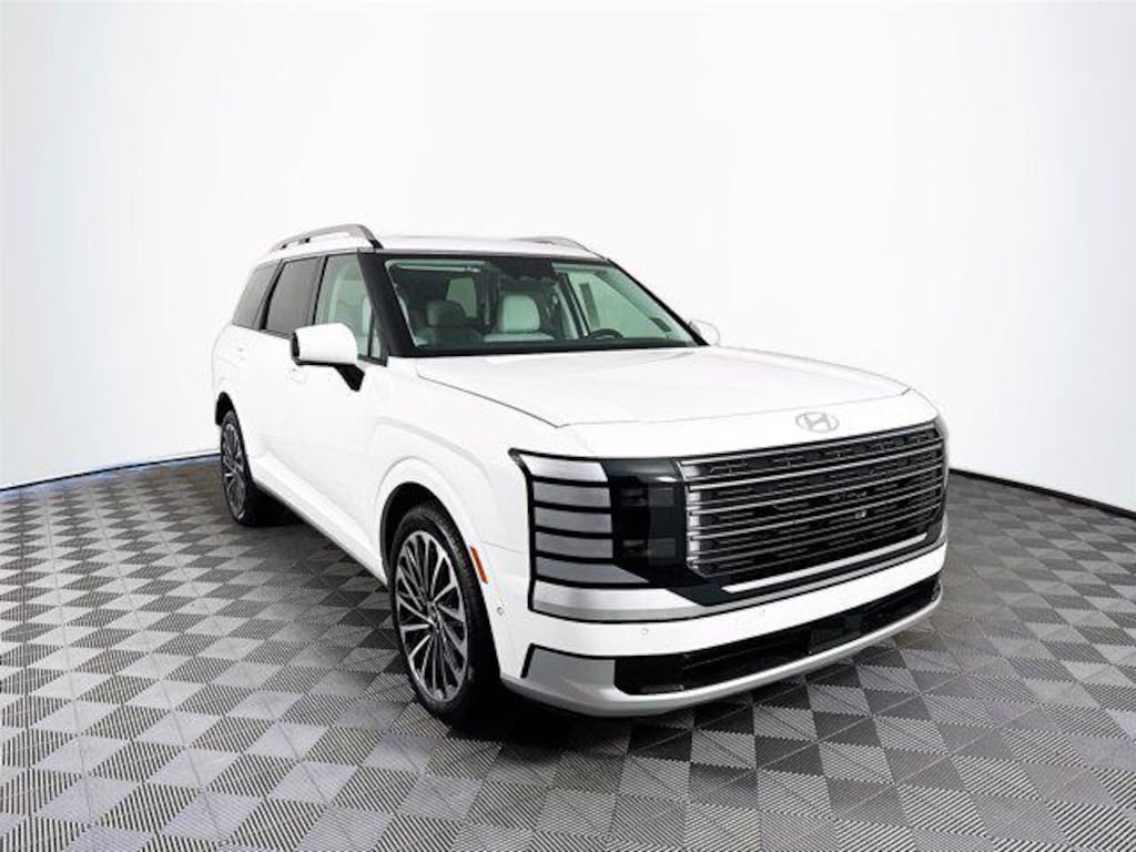 2026 Hyundai Palisade Calligraphy Calligraphy 14 Speakers, 3rd row seats: split-bench, 4-Wheel Disc Brakes, ABS brakes, Air Conditioning, Alloy wheels, AM/FM radio: SiriusXM, Apple CarPlay & Android Auto, Audio memory, Auto High-beam Headlights, Auto-dimming door mirrors, Auto-dimming Rear-View mirror, Auto-leveling suspension, Automatic temperature control, Brake assist, Bumpers: body-color, Cargo Cover, Cargo Net, Cargo Tray, Carpeted Floor Mats, Compass, Delay-off headlights, Driver door bin, Driver vanity mirror, Dual front impact airbags, Dual front side impact airbags, Electronic Stability Control, Emergency communication system: Bluelink+, Exterior Parking Camera Rear, Four wheel independent suspension, Front anti-roll bar, Front Bucket Seats, Front Center Armrest, Front dual zone A/C, Front reading lights, Fully automatic headlights, Garage door transmitter: HomeLink, Genuine wood console insert, Genuine wood dashboard insert, Heads-Up Display, Heated & Ventilated Front Bucket Seats, Heated door mirrors, Heated front seats, Heated rear seats, Heated steering wheel, HVAC memory, Illuminated entry, Knee airbag, Leather steering wheel, Low tire pressure warning, Memory seat, Navigation System, Occupant sensing airbag, Option Group 01, Outside temperature display, Overhead airbag, Overhead console, Panic alarm, Passenger door bin, Passenger vanity mirror, Power door mirrors, Power driver seat, Power Liftgate, Power moonroof, Power passenger seat, Power steering, Power windows, Premium Nappa Leather Seat Trim, Radio data system, Radio: Infotainment Navigation System, Rain sensing wipers, Rear air conditioning, Rear anti-roll bar, Rear audio controls, Rear reading lights, Rear side impact airbag, Rear window defroster, Rear window wiper, Reclining 3rd row seat, Remote keyless entry, Security system, Speed control, Split folding rear seat, Spoiler, Steering wheel mounted audio controls, Tachometer, Telescoping steering wheel, Tilt steering wheel, Traction control, Trip computer, Turn signal indicator mirrors, Variably intermittent wipers, Ventilated front seats, Ventilated rear seats, Wheels: 21" x 8.5J Alloy.