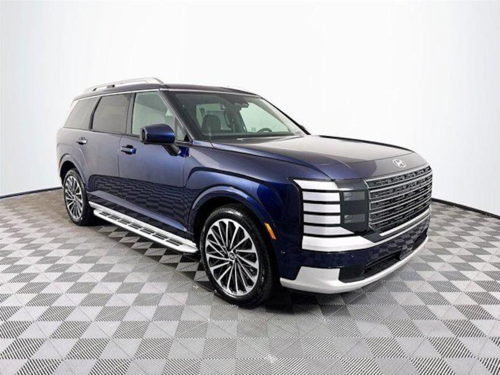 2026 Hyundai Palisade Calligraphy Calligraphy 14 Speakers, 3rd row seats: split-bench, 4-Wheel Disc Brakes, ABS brakes, Air Conditioning, Alloy wheels, AM/FM radio: SiriusXM, Apple CarPlay & Android Auto, Audio memory, Auto High-beam Headlights, Auto-dimming door mirrors, Auto-dimming Rear-View mirror, Auto-leveling suspension, Automatic temperature control, Brake assist, Bumpers: body-color, Cargo Blocks, Carpeted Floor Mats, Compass, Delay-off headlights, Driver door bin, Driver vanity mirror, Dual front impact airbags, Dual front side impact airbags, Electronic Stability Control, Emergency communication system: Bluelink+, Exterior Parking Camera Rear, Four wheel independent suspension, Front anti-roll bar, Front Bucket Seats, Front Center Armrest, Front dual zone A/C, Front reading lights, Fully automatic headlights, Garage door transmitter: HomeLink, Genuine wood console insert, Genuine wood dashboard insert, Heads-Up Display, Heated & Ventilated Front Bucket Seats, Heated door mirrors, Heated front seats, Heated rear seats, Heated steering wheel, HVAC memory, Illuminated entry, Knee airbag, Leather steering wheel, Low tire pressure warning, Memory seat, Navigation System, Occupant sensing airbag, Option Group 01, Outside temperature display, Overhead airbag, Overhead console, Panic alarm, Passenger door bin, Passenger vanity mirror, Power door mirrors, Power driver seat, Power Liftgate, Power moonroof, Power passenger seat, Power steering, Power windows, Premium Nappa Leather Seat Trim, Radio data system, Radio: Infotainment Navigation System, Rain sensing wipers, Rear air conditioning, Rear anti-roll bar, Rear audio controls, Rear reading lights, Rear side impact airbag, Rear window defroster, Rear window wiper, Reclining 3rd row seat, Remote keyless entry, Security system, Side Steps, Speed control, Split folding rear seat, Spoiler, Steering wheel mounted audio controls, Tachometer, Telescoping steering wheel, Tilt steering wheel, Traction control, Trip computer, Turn signal indicator mirrors, Variably intermittent wipers, Ventilated front seats, Ventilated rear seats, Wheels: 21" x 8.5J Alloy.