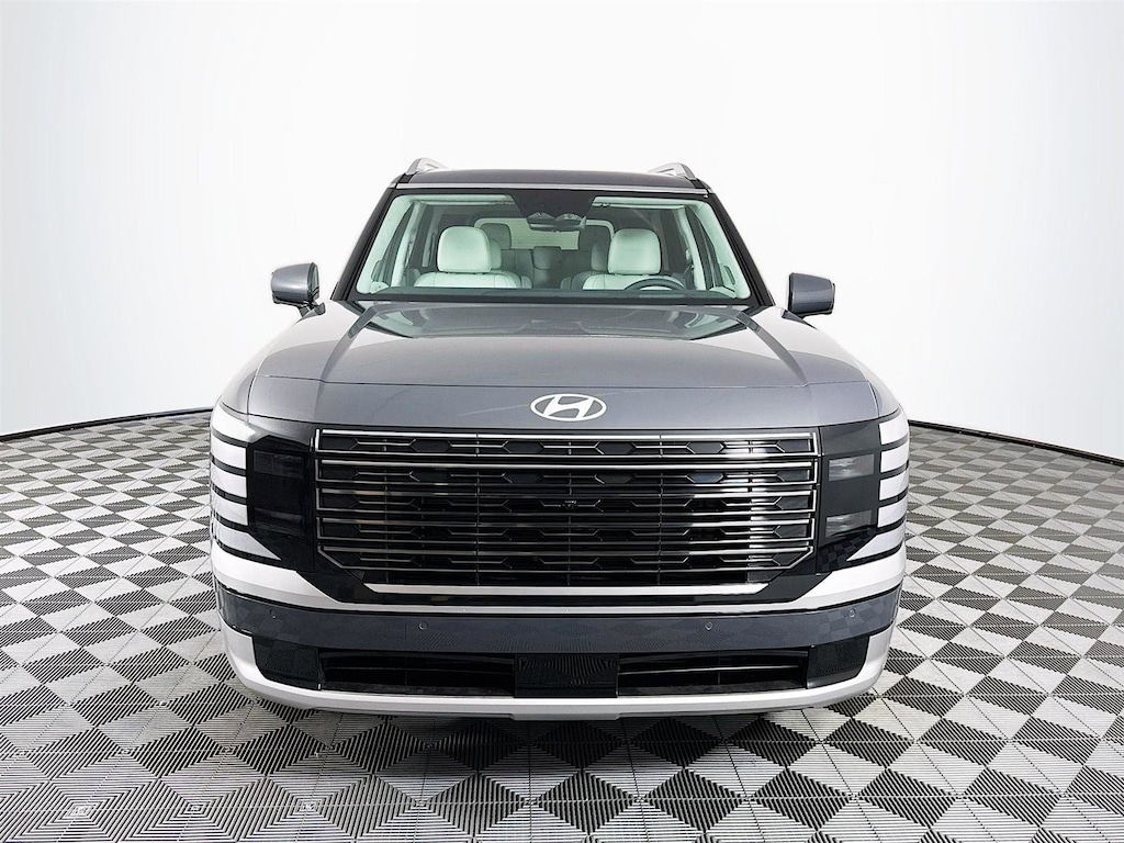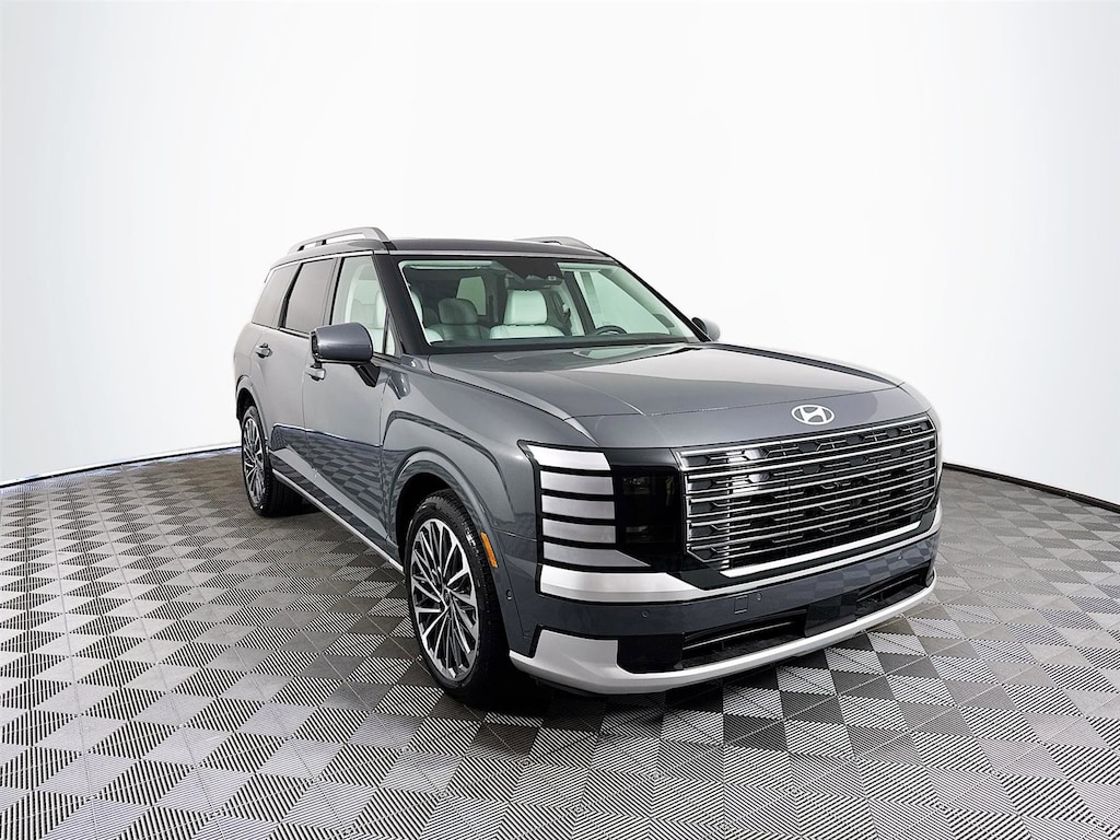 2026 Hyundai Palisade Calligraphy Calligraphy 14 Speakers, 3rd row seats: split-bench, 4-Wheel Disc Brakes, ABS brakes, Air Conditioning, Alloy wheels, AM/FM radio: SiriusXM, Apple CarPlay & Android Auto, Audio memory, Auto High-beam Headlights, Auto-dimming door mirrors, Auto-dimming Rear-View mirror, Auto-leveling suspension, Automatic temperature control, Brake assist, Bumpers: body-color, Cargo Cover, Cargo Net, Cargo Tray, Carpeted Floor Mats, Compass, Delay-off headlights, Driver door bin, Driver vanity mirror, Dual front impact airbags, Dual front side impact airbags, Electronic Stability Control, Emergency communication system: Bluelink+, Exterior Parking Camera Rear, First Aid Kit, Four wheel independent suspension, Front anti-roll bar, Front Bucket Seats, Front Center Armrest, Front dual zone A/C, Front reading lights, Fully automatic headlights, Garage door transmitter: HomeLink, Genuine wood console insert, Genuine wood dashboard insert, Heads-Up Display, Heated & Ventilated Front Bucket Seats, Heated door mirrors, Heated front seats, Heated rear seats, Heated steering wheel, HVAC memory, Illuminated entry, Knee airbag, Leather steering wheel, Low tire pressure warning, Memory seat, Navigation System, Occupant sensing airbag, Option Group 01, Outside temperature display, Overhead airbag, Overhead console, Panic alarm, Passenger door bin, Passenger vanity mirror, Power door mirrors, Power driver seat, Power Liftgate, Power moonroof, Power passenger seat, Power steering, Power windows, Premium Nappa Leather Seat Trim, Radio data system, Radio: Infotainment Navigation System, Rain sensing wipers, Rear air conditioning, Rear anti-roll bar, Rear audio controls, Rear reading lights, Rear side impact airbag, Rear window defroster, Rear window wiper, Reclining 3rd row seat, Remote keyless entry, Security system, Speed control, Split folding rear seat, Spoiler, Steering wheel mounted audio controls, Tachometer, Telescoping steering wheel, Tilt steering wheel, Traction control, Trip computer, Turn signal indicator mirrors, Variably intermittent wipers, Ventilated front seats, Ventilated rear seats, Wheels: 21" x 8.5J Alloy.