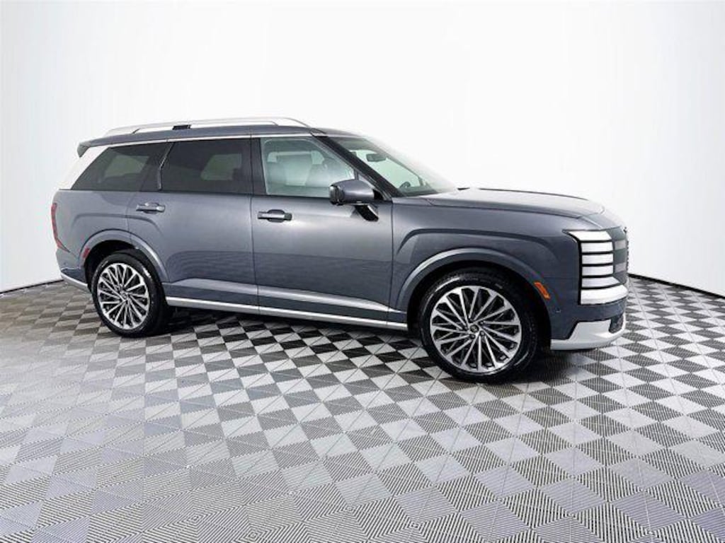 2026 Hyundai Palisade Calligraphy Calligraphy 14 Speakers, 3rd row seats: split-bench, 4-Wheel Disc Brakes, ABS brakes, Air Conditioning, Alloy wheels, AM/FM radio: SiriusXM, Apple CarPlay & Android Auto, Audio memory, Auto High-beam Headlights, Auto-dimming door mirrors, Auto-dimming Rear-View mirror, Auto-leveling suspension, Automatic temperature control, Brake assist, Bumpers: body-color, Cargo Cover, Cargo Net, Cargo Tray, Carpeted Floor Mats, Compass, Delay-off headlights, Driver door bin, Driver vanity mirror, Dual front impact airbags, Dual front side impact airbags, Electronic Stability Control, Emergency communication system: Bluelink+, Exterior Parking Camera Rear, First Aid Kit, Four wheel independent suspension, Front anti-roll bar, Front Bucket Seats, Front Center Armrest, Front dual zone A/C, Front reading lights, Fully automatic headlights, Garage door transmitter: HomeLink, Genuine wood console insert, Genuine wood dashboard insert, Heads-Up Display, Heated & Ventilated Front Bucket Seats, Heated door mirrors, Heated front seats, Heated rear seats, Heated steering wheel, HVAC memory, Illuminated entry, Knee airbag, Leather steering wheel, Low tire pressure warning, Memory seat, Navigation System, Occupant sensing airbag, Option Group 01, Outside temperature display, Overhead airbag, Overhead console, Panic alarm, Passenger door bin, Passenger vanity mirror, Power door mirrors, Power driver seat, Power Liftgate, Power moonroof, Power passenger seat, Power steering, Power windows, Premium Nappa Leather Seat Trim, Radio data system, Radio: Infotainment Navigation System, Rain sensing wipers, Rear air conditioning, Rear anti-roll bar, Rear audio controls, Rear reading lights, Rear side impact airbag, Rear window defroster, Rear window wiper, Reclining 3rd row seat, Remote keyless entry, Security system, Speed control, Split folding rear seat, Spoiler, Steering wheel mounted audio controls, Tachometer, Telescoping steering wheel, Tilt steering wheel, Traction control, Trip computer, Turn signal indicator mirrors, Variably intermittent wipers, Ventilated front seats, Ventilated rear seats, Wheels: 21" x 8.5J Alloy.