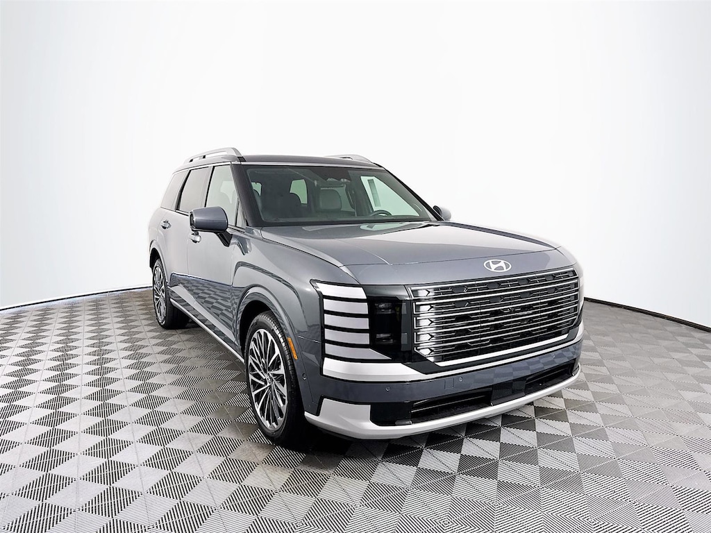 2026 Hyundai Palisade Calligraphy Calligraphy 14 Speakers, 3rd row seats: split-bench, 4-Wheel Disc Brakes, ABS brakes, Air Conditioning, Alloy wheels, AM/FM radio: SiriusXM, Apple CarPlay & Android Auto, Audio memory, Auto High-beam Headlights, Auto-dimming door mirrors, Auto-dimming Rear-View mirror, Auto-leveling suspension, Automatic temperature control, Brake assist, Bumpers: body-color, Cargo Cover, Cargo Net, Cargo Tray, Carpeted Floor Mats, Compass, Delay-off headlights, Driver door bin, Driver vanity mirror, Dual front impact airbags, Dual front side impact airbags, Electronic Stability Control, Emergency communication system: Bluelink+, Exterior Parking Camera Rear, First Aid Kit, Four wheel independent suspension, Front anti-roll bar, Front Bucket Seats, Front Center Armrest, Front dual zone A/C, Front reading lights, Fully automatic headlights, Garage door transmitter: HomeLink, Genuine wood console insert, Genuine wood dashboard insert, Heads-Up Display, Heated & Ventilated Front Bucket Seats, Heated door mirrors, Heated front seats, Heated rear seats, Heated steering wheel, HVAC memory, Illuminated entry, Knee airbag, Leather steering wheel, Low tire pressure warning, Memory seat, Navigation System, Occupant sensing airbag, Option Group 01, Outside temperature display, Overhead airbag, Overhead console, Panic alarm, Passenger door bin, Passenger vanity mirror, Power door mirrors, Power driver seat, Power Liftgate, Power moonroof, Power passenger seat, Power steering, Power windows, Premium Nappa Leather Seat Trim, Radio data system, Radio: Infotainment Navigation System, Rain sensing wipers, Rear air conditioning, Rear anti-roll bar, Rear audio controls, Rear reading lights, Rear side impact airbag, Rear window defroster, Rear window wiper, Reclining 3rd row seat, Remote keyless entry, Security system, Speed control, Split folding rear seat, Spoiler, Steering wheel mounted audio controls, Tachometer, Telescoping steering wheel, Tilt steering wheel, Traction control, Trip computer, Turn signal indicator mirrors, Variably intermittent wipers, Ventilated front seats, Ventilated rear seats, Wheels: 21" x 8.5J Alloy.