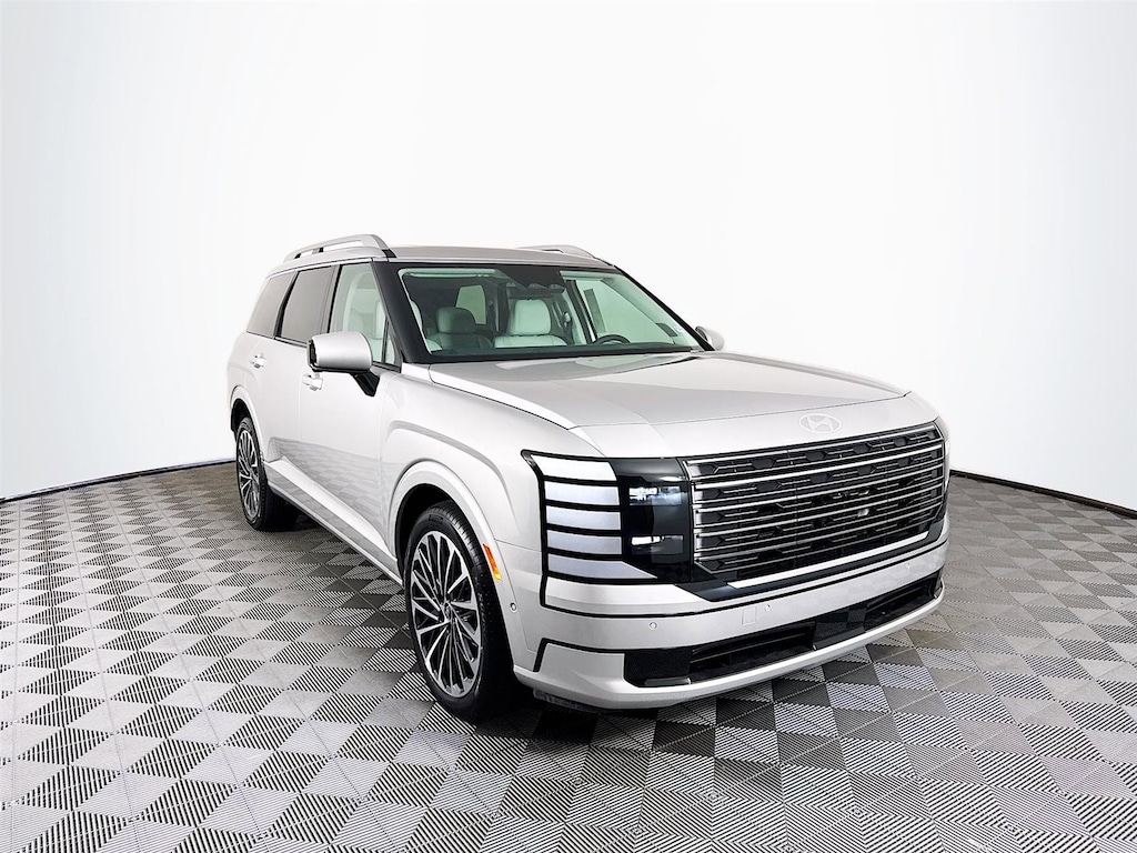 2026 Hyundai Palisade Calligraphy Calligraphy 14 Speakers, 3rd row seats: split-bench, 4-Wheel Disc Brakes, ABS brakes, Air Conditioning, All-Season Fitted Liners, Alloy wheels, AM/FM radio: SiriusXM, Apple CarPlay & Android Auto, Audio memory, Auto High-beam Headlights, Auto-dimming door mirrors, Auto-dimming Rear-View mirror, Auto-leveling suspension, Automatic temperature control, Brake assist, Bumpers: body-color, Cargo Blocks, Cargo Net, Carpeted Floor Mats, Compass, Delay-off headlights, Driver door bin, Driver vanity mirror, Dual front impact airbags, Dual front side impact airbags, Electronic Stability Control, Emergency communication system: Bluelink+, Exterior Parking Camera Rear, First Aid Kit, Four wheel independent suspension, Front anti-roll bar, Front Bucket Seats, Front Center Armrest, Front dual zone A/C, Front reading lights, Fully automatic headlights, Garage door transmitter: HomeLink, Genuine wood console insert, Genuine wood dashboard insert, Heads-Up Display, Heated & Ventilated Front Bucket Seats, Heated door mirrors, Heated front seats, Heated rear seats, Heated steering wheel, HVAC memory, Illuminated entry, Knee airbag, Leather steering wheel, Low tire pressure warning, Memory seat, Navigation System, Occupant sensing airbag, Option Group 01, Outside temperature display, Overhead airbag, Overhead console, Panic alarm, Passenger door bin, Passenger vanity mirror, Power door mirrors, Power driver seat, Power Liftgate, Power moonroof, Power passenger seat, Power steering, Power windows, Premium Nappa Leather Seat Trim, Radio data system, Radio: Infotainment Navigation System, Rain sensing wipers, Rear air conditioning, Rear anti-roll bar, Rear audio controls, Rear reading lights, Rear side impact airbag, Rear window defroster, Rear window wiper, Reclining 3rd row seat, Remote keyless entry, Security system, Speed control, Split folding rear seat, Spoiler, Steering wheel mounted audio controls, Tachometer, Telescoping steering wheel, Tilt steering wheel, Traction control, Trip computer, Turn signal indicator mirrors, Variably intermittent wipers, Ventilated front seats, Ventilated rear seats, Wheels: 21" x 8.5J Alloy.