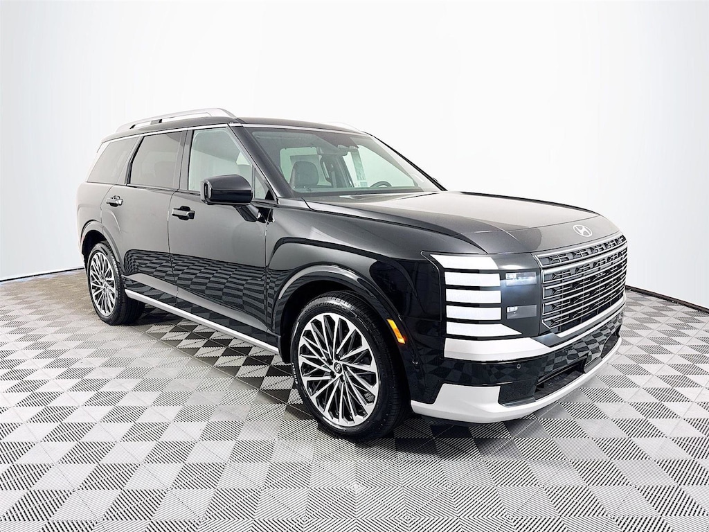 2026 Hyundai Palisade Calligraphy Calligraphy 14 Speakers, 3rd row seats: split-bench, 4-Wheel Disc Brakes, ABS brakes, Air Conditioning, Alloy wheels, AM/FM radio: SiriusXM, Apple CarPlay & Android Auto, Audio memory, Auto High-beam Headlights, Auto-dimming door mirrors, Auto-dimming Rear-View mirror, Auto-leveling suspension, Automatic temperature control, Brake assist, Bumpers: body-color, Cargo Tray, Carpeted Floor Mats, Compass, Delay-off headlights, Driver door bin, Driver vanity mirror, Dual front impact airbags, Dual front side impact airbags, Electronic Stability Control, Emergency communication system: Bluelink+, Exterior Parking Camera Rear, First Aid Kit, Four wheel independent suspension, Front anti-roll bar, Front Bucket Seats, Front Center Armrest, Front dual zone A/C, Front reading lights, Fully automatic headlights, Garage door transmitter: HomeLink, Genuine wood console insert, Genuine wood dashboard insert, Heads-Up Display, Heated & Ventilated Front Bucket Seats, Heated door mirrors, Heated front seats, Heated rear seats, Heated steering wheel, HVAC memory, Illuminated entry, Knee airbag, Leather steering wheel, Low tire pressure warning, Memory seat, Mud Guards, Navigation System, Occupant sensing airbag, Option Group 01, Outside temperature display, Overhead airbag, Overhead console, Panic alarm, Passenger door bin, Passenger vanity mirror, Power door mirrors, Power driver seat, Power Liftgate, Power moonroof, Power passenger seat, Power steering, Power windows, Premium Nappa Leather Seat Trim, Radio data system, Radio: Infotainment Navigation System, Rain sensing wipers, Rear air conditioning, Rear anti-roll bar, Rear audio controls, Rear reading lights, Rear side impact airbag, Rear window defroster, Rear window wiper, Reclining 3rd row seat, Remote keyless entry, Roadside Assistance Kit, Security system, Speed control, Split folding rear seat, Spoiler, Steering wheel mounted audio controls, Tachometer, Telescoping steering wheel, Tilt steering wheel, Traction control, Trip computer, Turn signal indicator mirrors, Variably intermittent wipers, Ventilated front seats, Ventilated rear seats, Wheels: 21" x 8.5J Alloy.