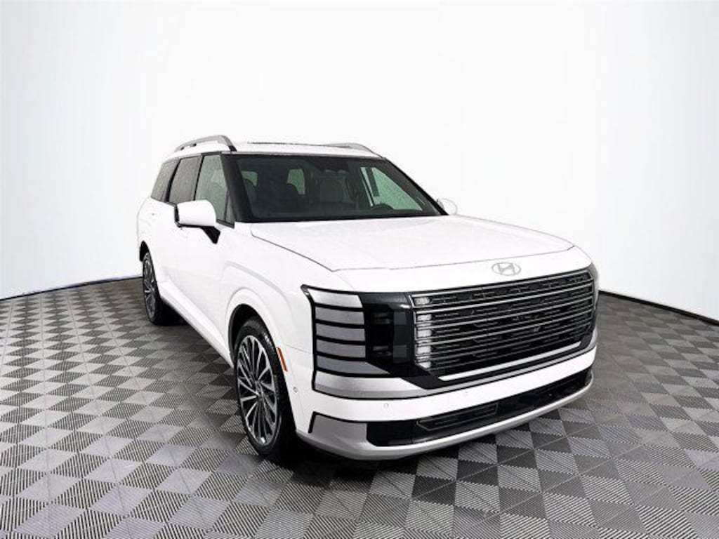 2026 Hyundai Palisade Calligraphy Calligraphy 14 Speakers, 3rd row seats: split-bench, 4-Wheel Disc Brakes, ABS brakes, Air Conditioning, Alloy wheels, AM/FM radio: SiriusXM, Apple CarPlay & Android Auto, Audio memory, Auto High-beam Headlights, Auto-dimming door mirrors, Auto-dimming Rear-View mirror, Auto-leveling suspension, Automatic temperature control, Brake assist, Bumpers: body-color, Cargo Cover, Cargo Net, Cargo Tray, Carpeted Floor Mats, Compass, Delay-off headlights, Driver door bin, Driver vanity mirror, Dual front impact airbags, Dual front side impact airbags, Electronic Stability Control, Emergency communication system: Bluelink+, Exterior Parking Camera Rear, First Aid Kit, Four wheel independent suspension, Front anti-roll bar, Front Bucket Seats, Front Center Armrest, Front dual zone A/C, Front reading lights, Fully automatic headlights, Garage door transmitter: HomeLink, Genuine wood console insert, Genuine wood dashboard insert, Heads-Up Display, Heated & Ventilated Front Bucket Seats, Heated door mirrors, Heated front seats, Heated rear seats, Heated steering wheel, HVAC memory, Illuminated entry, Knee airbag, Leather steering wheel, Low tire pressure warning, Memory seat, Navigation System, Occupant sensing airbag, Option Group 01, Outside temperature display, Overhead airbag, Overhead console, Panic alarm, Passenger door bin, Passenger vanity mirror, Power door mirrors, Power driver seat, Power Liftgate, Power moonroof, Power passenger seat, Power steering, Power windows, Premium Nappa Leather Seat Trim, Radio data system, Radio: Infotainment Navigation System, Rain sensing wipers, Rear air conditioning, Rear anti-roll bar, Rear audio controls, Rear reading lights, Rear side impact airbag, Rear window defroster, Rear window wiper, Reclining 3rd row seat, Remote keyless entry, Security system, Speed control, Split folding rear seat, Spoiler, Steering wheel mounted audio controls, Tachometer, Telescoping steering wheel, Tilt steering wheel, Traction control, Trip computer, Turn signal indicator mirrors, Variably intermittent wipers, Ventilated front seats, Ventilated rear seats, Wheels: 21" x 8.5J Alloy.