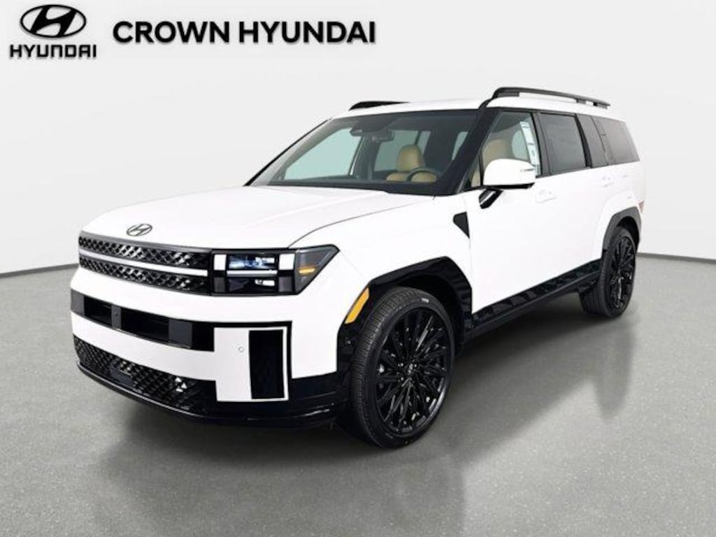 2026 Hyundai Santa Fe Calligraphy Calligraphy Pecan Brown Leather, 12 Speakers, 3rd row seats: bench, 4-Wheel Disc Brakes, ABS brakes, Air Conditioning, Alloy wheels, AM/FM radio: SiriusXM, Apple CarPlay & Android Auto, Auto High-beam Headlights, Auto-dimming Rear-View mirror, Automatic temperature control, Brake assist, Bumpers: body-color, Cargo Cover/Screen, Cargo Net, Cargo Tray, Carpeted Floor Mats, Delay-off headlights, Driver door bin, Driver vanity mirror, Dual front impact airbags, Dual front side impact airbags, Electronic Stability Control, Emergency communication system, Exterior Parking Camera Rear, First Aid Kit, Four wheel independent suspension, Front anti-roll bar, Front Bucket Seats, Front Center Armrest, Front dual zone A/C, Front reading lights, Fully automatic headlights, Garage door transmitter: HomeLink, Heads-Up Display, Heated & Ventilated Front Bucket Seats, Heated door mirrors, Heated front seats, Heated rear seats, Heated steering wheel, Illuminated entry, Knee airbag, Leather steering wheel, Low tire pressure warning, Memory seat, Navigation System, Occupant sensing airbag, Option Group 01, Outside temperature display, Overhead airbag, Overhead console, Panic alarm, Passenger door bin, Passenger vanity mirror, Power door mirrors, Power driver seat, Power Liftgate, Power moonroof, Power passenger seat, Power steering, Power windows, Quilted Premium Nappa Leather Seat Trim, Radio: AM/FM/HD Bose Premium Audio System, Rain sensing wipers, Rear anti-roll bar, Rear side impact airbag, Rear window defroster, Rear window wiper, Remote keyless entry, Roof Rack Crossbars, Security system, Speed control, Speed-sensing steering, Split folding rear seat, Spoiler, Steering wheel mounted audio controls, Tachometer, Telescoping steering wheel, Tilt steering wheel, Traction control, Trip computer, Turn signal indicator mirrors, Variably intermittent wipers, Ventilated front seats, Wheels: 21" x 8.5J Unique Dark Finish Alloy, Pecan Brown Leather.