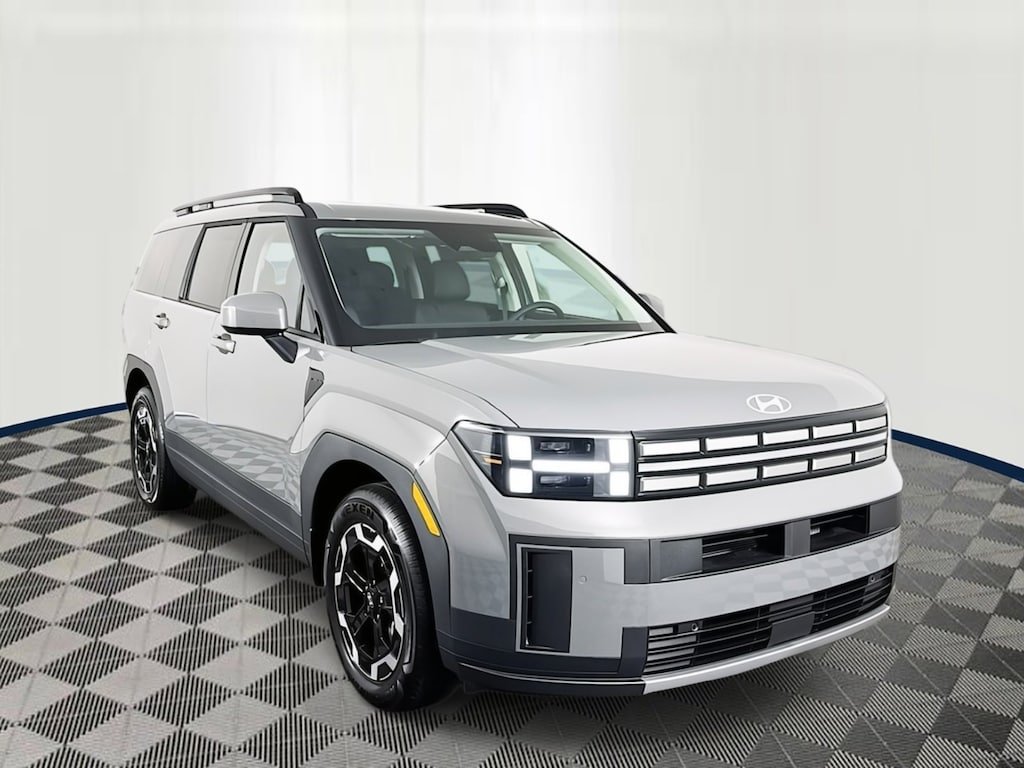 2026 Hyundai Santa Fe SEL SEL Black Premium Synthetic, 18" x 7.5J Alloy Wheels, 3rd row seats: bench, 4-Wheel Disc Brakes, 6 Speakers, ABS brakes, Air Conditioning, All Season Fitted Liners, Alloy wheels, AM/FM radio: SiriusXM, Apple CarPlay & Android Auto, Auto High-beam Headlights, Automatic temperature control, Brake assist, Bumpers: body-color, Cargo Cover/Screen, Cargo Net, Cargo Tray, Carpeted Floor Mats, Delay-off headlights, Driver door bin, Driver vanity mirror, Dual front impact airbags, Dual front side impact airbags, Electronic Stability Control, Emergency communication system, Exterior Parking Camera Rear, First Aid Kit, Four wheel independent suspension, Front anti-roll bar, Front Bucket Seats, Front Center Armrest, Front dual zone A/C, Front reading lights, Fully automatic headlights, H-Tex Leatherette Seat Trim, Heated door mirrors, Heated Front Bucket Seats, Heated front seats, Illuminated entry, Knee airbag, Leather steering wheel, Low tire pressure warning, Mudguards, Occupant sensing airbag, Option Group 01, Outside temperature display, Overhead airbag, Overhead console, Panic alarm, Passenger door bin, Passenger vanity mirror, Power door mirrors, Power driver seat, Power Liftgate, Power steering, Power windows, Radio: AM/FM/HD Display Audio, Rear anti-roll bar, Rear seat center armrest, Rear side impact airbag, Rear window defroster, Rear window wiper, Remote keyless entry, Roadside Assistance Kit, Security system, Speed control, Speed-sensing steering, Split folding rear seat, Spoiler, Steering wheel mounted audio controls, Tachometer, Telescoping steering wheel, Tilt steering wheel, Traction control, Trip computer, Turn signal indicator mirrors, Variably intermittent wipers, Black Premium Synthetic.