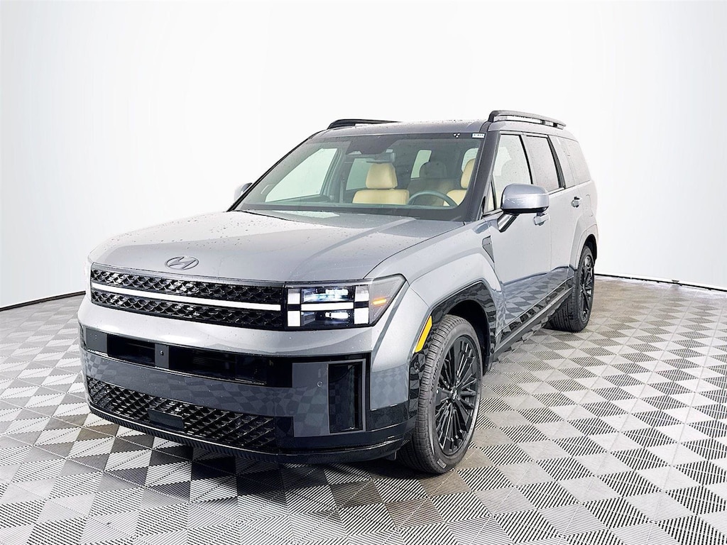 2026 Hyundai Santa Fe Hybrid Calligraphy Calligraphy I4, 12 Speakers, 3rd row seats: bench, 4-Wheel Disc Brakes, ABS brakes, Air Conditioning, All Season Fitted Liners, Alloy wheels, AM/FM radio: SiriusXM, Apple CarPlay & Android Auto, Auto High-beam Headlights, Auto-dimming Rear-View mirror, Automatic temperature control, Brake assist, Bumpers: body-color, Cargo Blocks, Cargo Cover/Screen, Cargo Net, Cargo Tray, Carpeted Floor Mats, Delay-off headlights, Driver door bin, Driver vanity mirror, Dual front impact airbags, Dual front side impact airbags, Electronic Stability Control, Emergency communication system, Exterior Parking Camera Rear, First Aid Kit, Four wheel independent suspension, Front anti-roll bar, Front Bucket Seats, Front Center Armrest, Front dual zone A/C, Front reading lights, Fully automatic headlights, Garage door transmitter: HomeLink, Heads-Up Display, Heated & Ventilated Front Bucket Seats, Heated door mirrors, Heated front seats, Heated rear seats, Heated steering wheel, Illuminated entry, Knee airbag, Leather steering wheel, Low tire pressure warning, Memory seat, Navigation System, Occupant sensing airbag, Option Group 01, Outside temperature display, Overhead airbag, Overhead console, Panic alarm, Passenger door bin, Passenger vanity mirror, Power door mirrors, Power driver seat, Power Liftgate, Power moonroof, Power passenger seat, Power steering, Power windows, Quilted Premium Nappa Leather Seat Trim, Radio: AM/FM/HD Bose Premium Audio System, Rain sensing wipers, Rear anti-roll bar, Rear side impact airbag, Rear window defroster, Rear window wiper, Remote keyless entry, Security system, Speed control, Speed-sensing steering, Split folding rear seat, Spoiler, Steering wheel mounted audio controls, Tachometer, Telescoping steering wheel, Tilt steering wheel, Traction control, Trip computer, Turn signal indicator mirrors, Variably intermittent wipers, Ventilated front seats, Wheels: 20" x 8.5J Unique Dark Finish Alloy, I4.