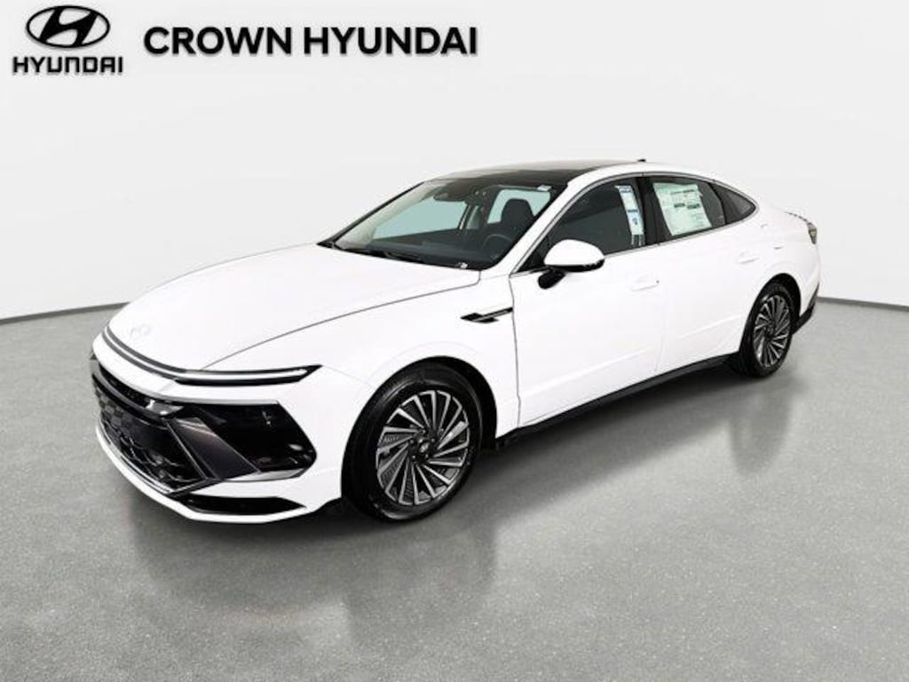 2026 Hyundai Sonata Hybrid SEL SEL I4, 17" x 7.0J Aluminum Alloy Wheels, 4-Wheel Disc Brakes, 6 Speakers, ABS brakes, Air Conditioning, Alloy wheels, AM/FM radio: SiriusXM, Apple CarPlay & Android Auto, Auto High-beam Headlights, Automatic temperature control, Brake assist, Bumpers: body-color, Cargo Organizer, Cargo Tray, Carpeted Floor Mats, Delay-off headlights, Driver door bin, Driver vanity mirror, Dual front impact airbags, Dual front side impact airbags, Electronic Stability Control, Emergency communication system: None, First Aid Kit, Four wheel independent suspension, Front anti-roll bar, Front Bucket Seats, Front Center Armrest, Front dual zone A/C, Front reading lights, Fully automatic headlights, Heated door mirrors, Heated Front Bucket Seats, Heated front seats, Illuminated entry, Knee airbag, Lane Departure Warning System, Leather steering wheel, Low tire pressure warning, Occupant sensing airbag, Option Group 01, Outside temperature display, Overhead airbag, Overhead console, Panic alarm, Passenger door bin, Passenger vanity mirror, Power door mirrors, Power driver seat, Power moonroof, Power steering, Power windows, Premium Cloth Seating Surfaces, Radio data system, Radio: AM/FM/HD/MP3/SiriusXM, Rear anti-roll bar, Rear seat center armrest, Rear side impact airbag, Rear window defroster, Remote keyless entry, Security system, Speed control, Speed-sensing steering, Speed-Sensitive Wipers, Split folding rear seat, Spoiler, Steering wheel mounted audio controls, Tachometer, Telescoping steering wheel, Tilt steering wheel, Traction control, Trip computer, Variably intermittent wipers, I4. 44/51 City/Highway MPG